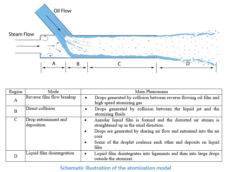 3. The develop models use novel probabilistic approaches to determine the evolution of the liquid volume and surface as the liquid breaks into droplets and fragments. The results show that the method not only provides good predictions in air-blast atomizers but can also be applied directly to other types of fuel injectors, such as Diesel sprays for internal combustion engines.