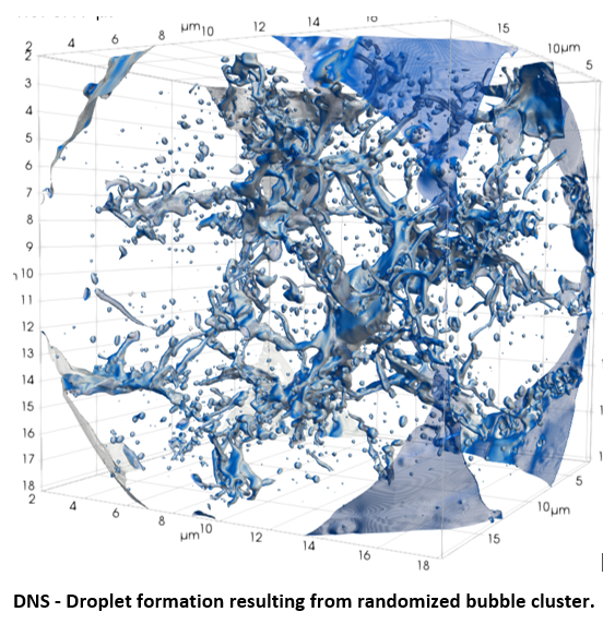 1. The produced data can be used in the derivation of collapse-induced atomization models for problems of larger scales; while also valuable insight gained into the mechanisms that lead to the development of high levels of pressure within the flow and on nearby surfaces.