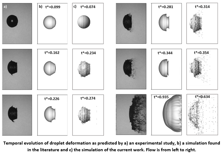 4. For the first time, simulations for the breakup of droplets were performed at representative engine conditions (Diesel, scramjet and marine) as well as for cluster formations (tandem, parallel and combined). Correlations and simultions produced can be utilized in macroscopic CFD codes for the simulation of sprays, which can be utilized to design an efficient fuel injection system with a potential reduction in NOx emissions