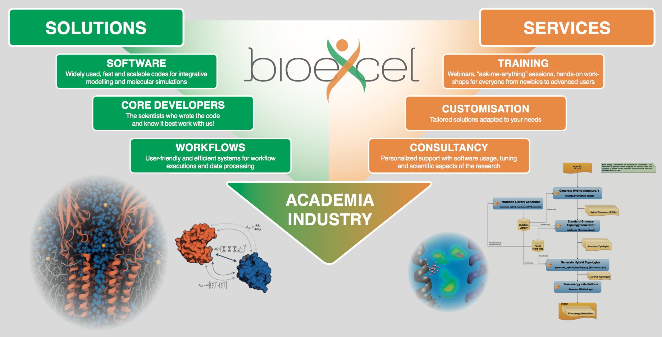 Impact: Through increasing the efficiency, scalability, and functionality of key biomolecular software, the computational costs will be drastically reduced providing a shorter time to solution, better exploitation of the available hardware, and thus reducing the development cycle and increasing the effectiveness of key products such as new drugs.
