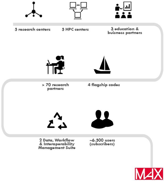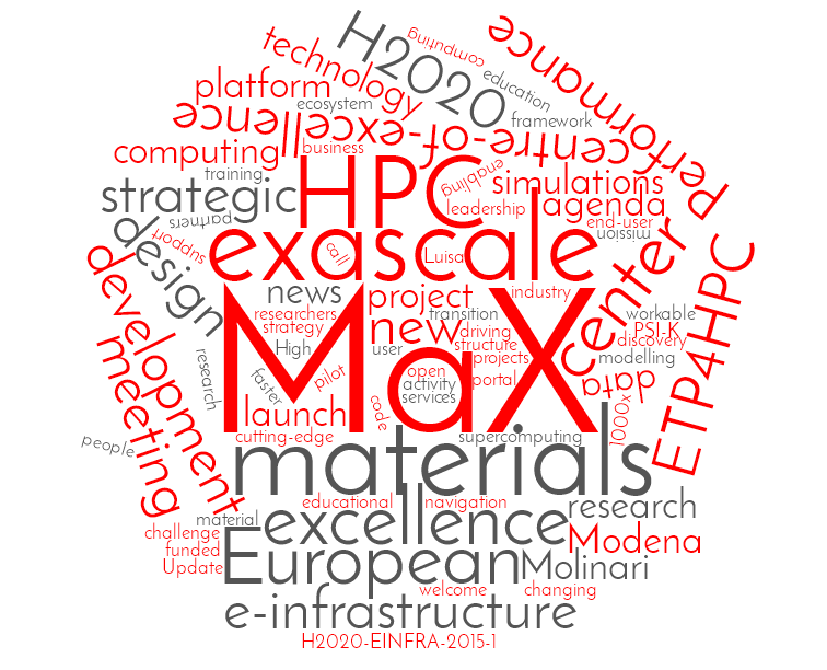 MaX is a user-driven European Centre of Excellence supporting developers and end-users of materials simulations, design and discovery. It focuses on enabling the best use and evolution of current HPC technologies by creating an open ecosystem of knowledge, capabilities, open software applications, data workflows, analytic tools and user-oriented services.