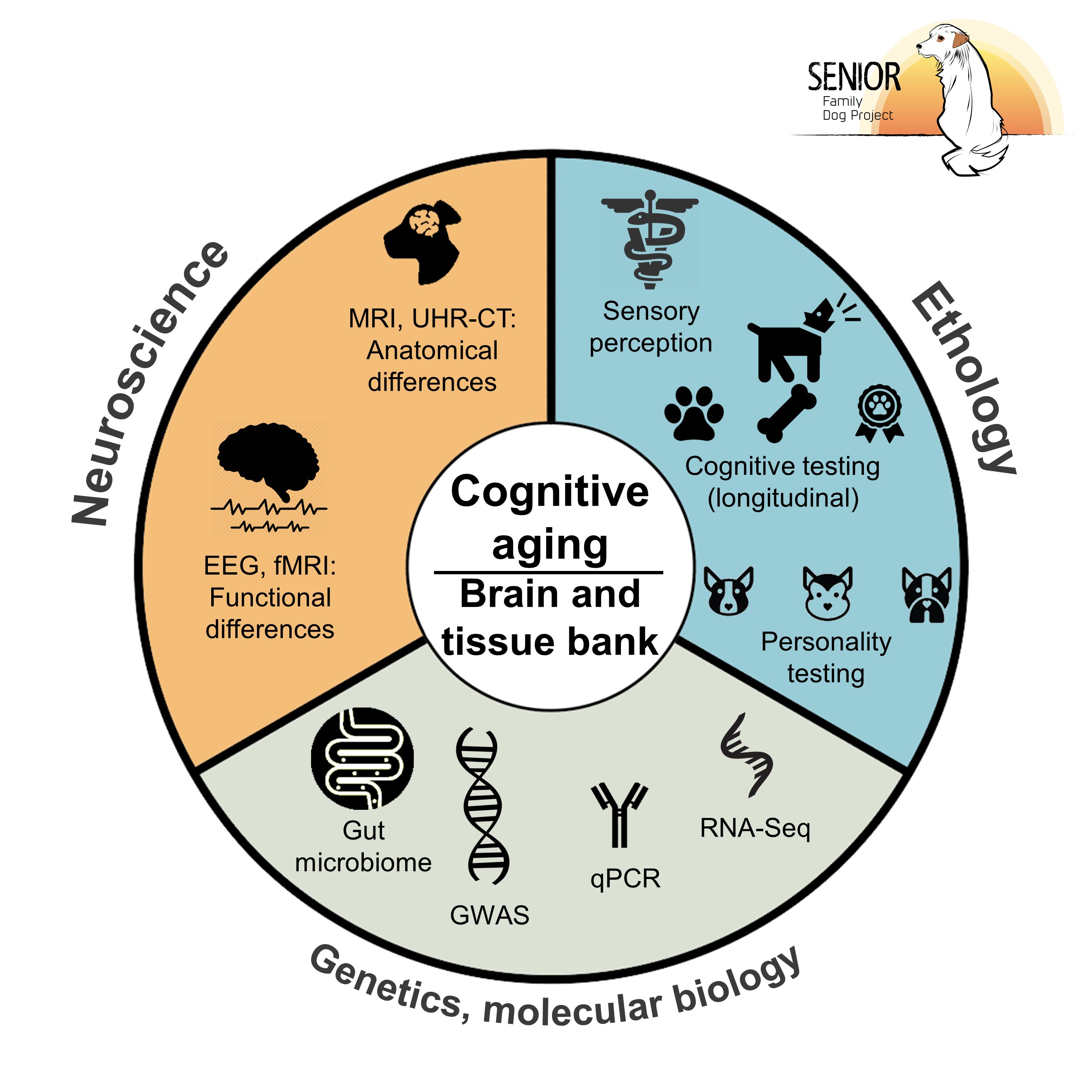 Our project aimed to explore the cognitive ageing of family dogs using an interdisciplinary approach with behavioural, neuroscientific, and genetic testing methods. Our goal was twofold: to enhance translational research on cognitive ageing and increase canine welfare. We characterised the canine ageing phenotype with cross-sectional and longitudinal investigations and identified age-related biomarkers.