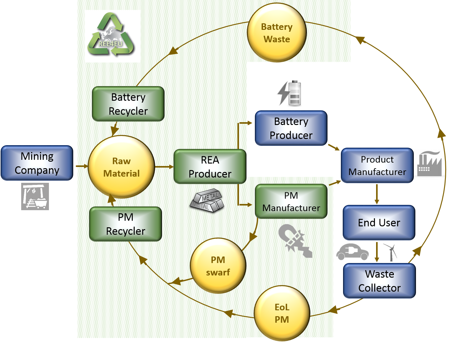 The REE4EU project has developed, validated and demonstrated in 2 industrially relevant pilots an innovative closed-loop permanent magnet recycling process using secondary REE-resources available in Europe. Moreover, the integrated solution was replicated using other RE-containing wastes, i.e. spent NiMH batteries.
