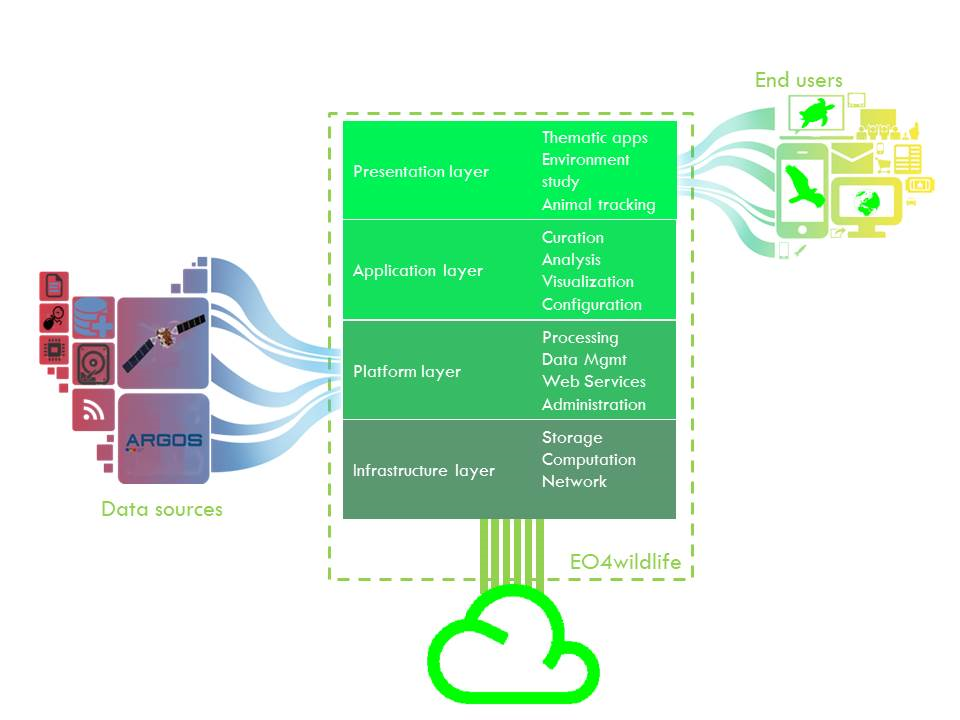- Architecture a system to access Sentinel Earth Observation data, ARGOS databases of archive and real time, thematic wildlife databank portals and other Earth Observation and MetOcean databases.