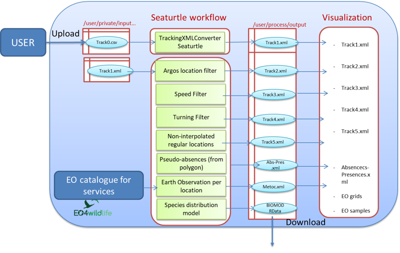 As a conclusion, EO4wildlife contributes to the “efficient and widespread exploitation of the existing and planned European space infrastructure (especially Copernicus with its sentinel satellites)” by delivering a platform (1) enabling the access to Sentinel Earth Observation data, (2) ARGOS databases of archive and real time, (3) additional thematic databank portals (such Seabirdtracking.org) and (4) other Earth Observation and MetOcean databases; with (5) additional facilities to develop and run algorithms for dedicated data analytics and models.