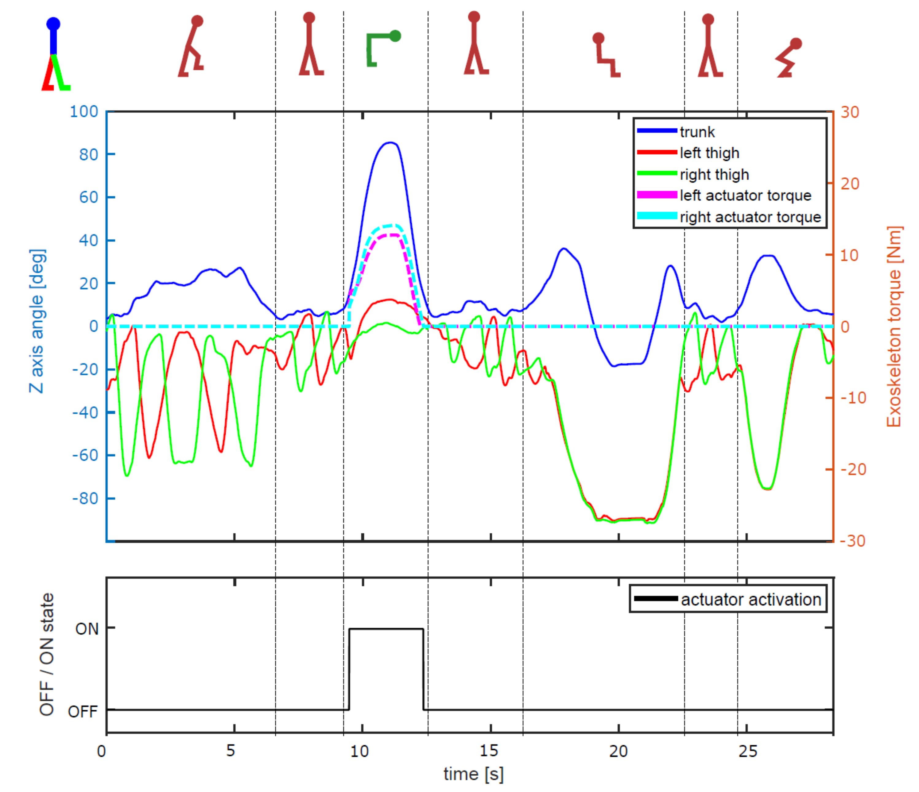 A novel control concept was developed, implemented and evaluated for the quasi-passive spinal exoskeletons and for both active exoskeletons. The control concept is based on probabilistic state classifiers combined with a state machine and transition phases.