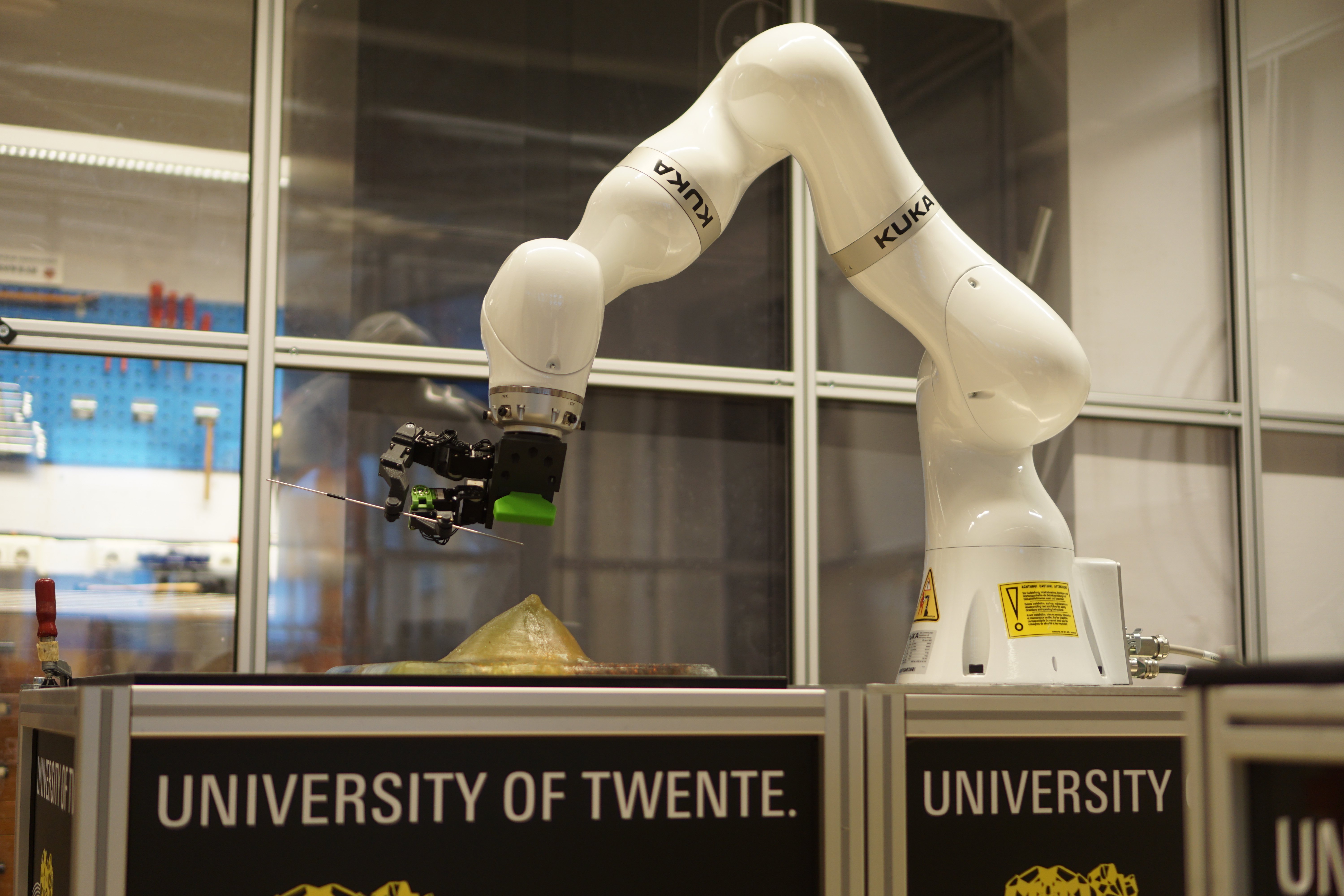 Several prototypes of the end effector were designed. The end effector was integrated with the KUKA robotic arm.
