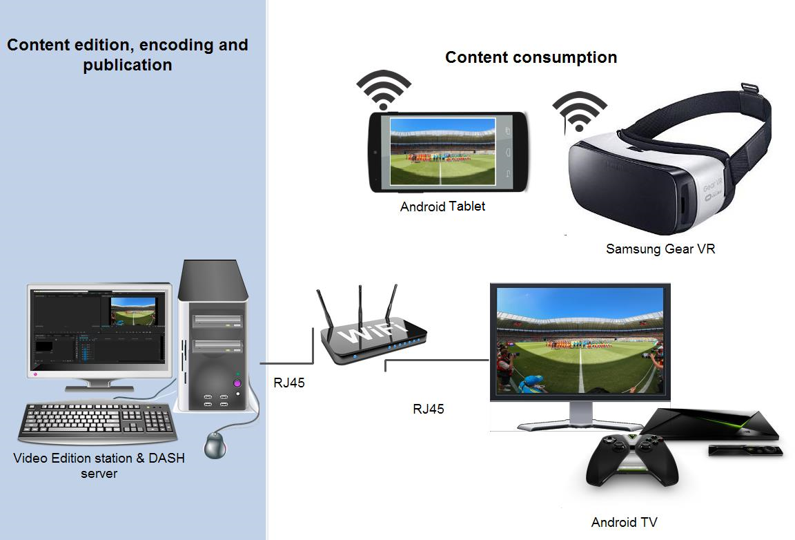 -Capture: Videostitch partner delivered one of the first 360 cameras in the market that embedded a stitching process and a binaural audio mic providing standard H.264 and H.265 output streams (opposite to other solutions at that time, like Ozo from Nokia, requiring proprietary software to manage and edit output streams). In addition to that, the other capture partners (IMEC-Uni Hasselt and Azilpix) improved usability, capacity and transcoding features of Studio.One system. Studio.One is a black box video capture solution that can manipulate multiple video streams (conventional, panoramic and 360) providing a set of functionalities (image manipulation, transcoding, camera sync, etc.) that facilitates, among other things, the usage of multiple 360 cameras, not only for the creation of 360 content, but also for the creation of directive content resulting from 360 capture devices.