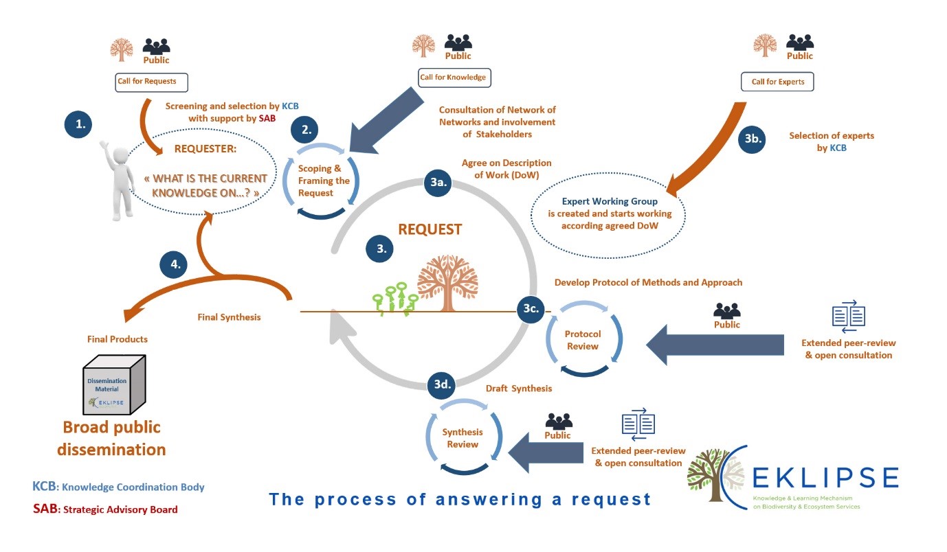 The EKLIPSE project succeeded in developing and setting up an innovative, light, ethical and self-sustainable EU support mechanism for evidence-based and evidence-informed policy on biodiversity and ecosystem services. The mechanism resulting from this project was developed by building on existing science-policy-society interface approaches and further refined through iterative learning and formative evaluation throughout the project. The mechanism was designed to provide trustworthy evidence for policy and society upon request and make the knowledge community more responsive by providing a platform for mutual learning and engagement with policy and society. The mechanism was developed by a core team of project partners dedicated to facilitating the engagement of the wider communities of biodiversity knowledge holders and users in the EU. EU and member state institutions and networks were instrumental in the functioning of this project, its impacts and the resulting mechanism. Therefore, all relevant EU institutions, knowledge holders and stakeholders were actively encouraged and supported to get involved through their individual strengths and interests, ensuring targeted contributions from outside the expertise of the project team throughout the project.