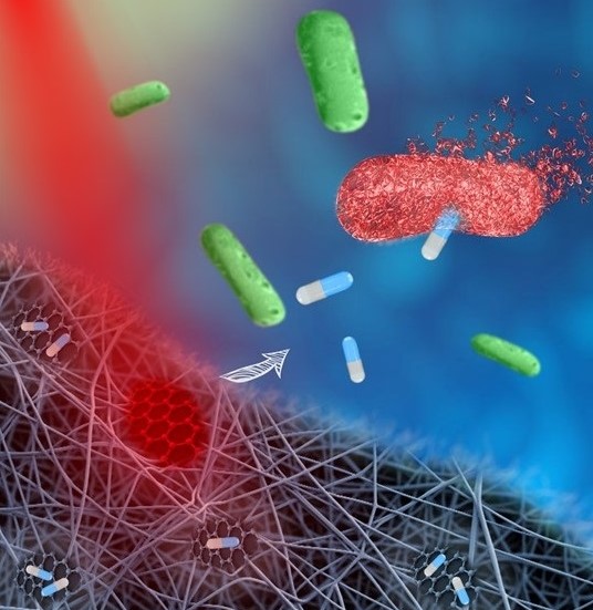 2. Development of a novel nanofiber-based platform for photothermally-triggered “on-demand” release of antibiotics (published in ACS Applied Materials and Interfaces 2018, 10, 41098–41106)
