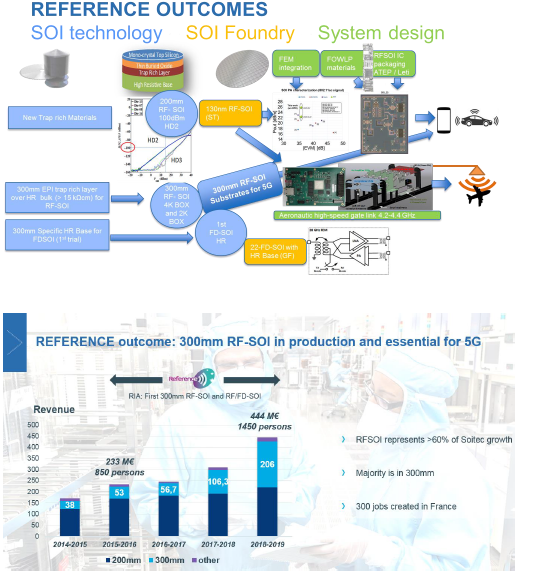 • Development of 4G+ / 5G RF-SOI devices with 2 major European foundries : analog in 200 mm 130nm technology, RF digital by combining RFSOI and FDSOI in 300 mm at 22nm;