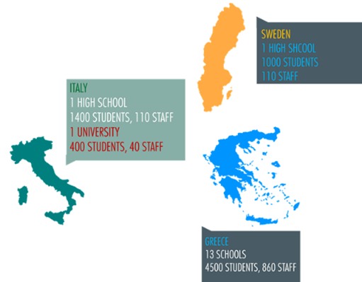 GAIA deployed its solutions across 25 educational buildings located in Italy, Greece and Sweden. This lineup of schools has translated to an audience for the project activities that consisted of several thousands of students and teachers, which participated directly in GAIA. Overall, 3165 students and 293 educators participated directly in GAIA’s activities, while the total number of students in these schools, which were also affected by the project, was 7500 for the school year 2018-19.