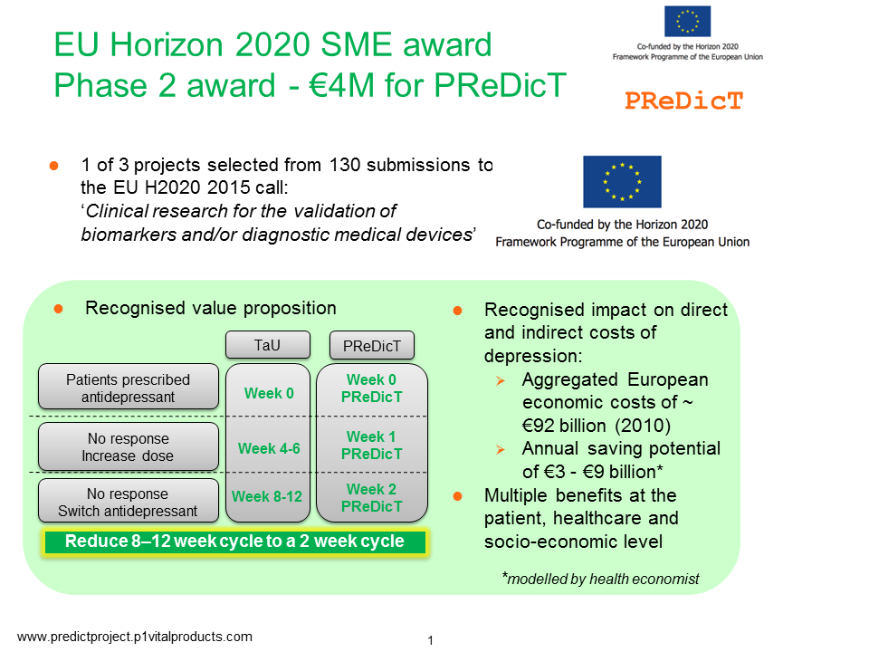 The objective of the project was to conduct clinical and commercial research to validate the performance of PReDicT; ultimately to support the launch of our novel medical device to improve the treatment and management of depression in primary care.