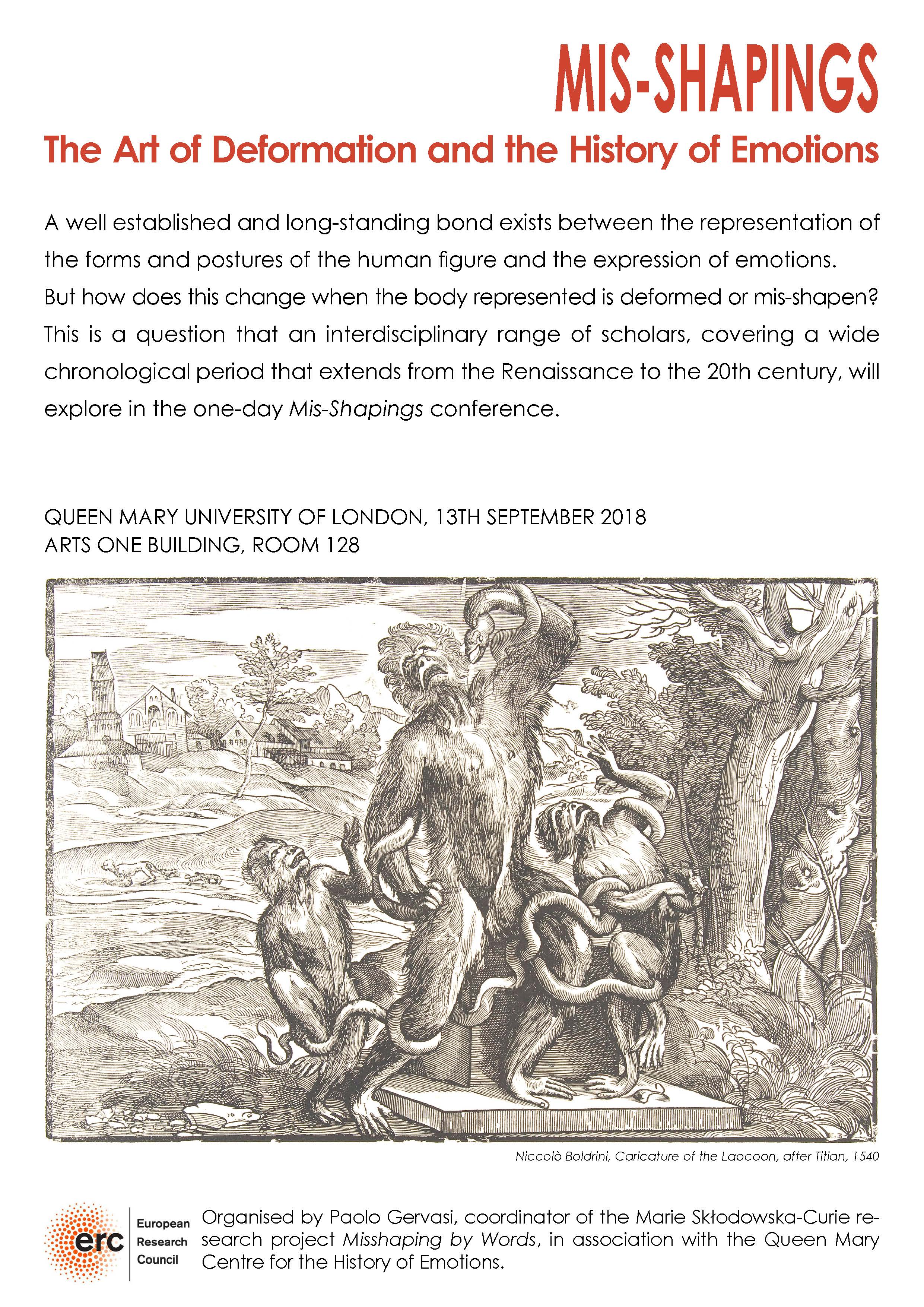 The results of the project were also exploited, presented and discussed through the scientific design, organization and conveying of the conference «Mis-Shapings: The Art of Deformation and the History Emotions» (September 13, Queen Mary University of London), where I presented the paper Physiognomy Unchained. Caricature as Emotional Intelligence. See the programme of the conference on the project website for a full presentation of the speakers and their papers: https://blogs.history.qmul.ac.uk/litcaricature/2018/07/19/mis-shapings/(se abrirá en una nueva ventana)
