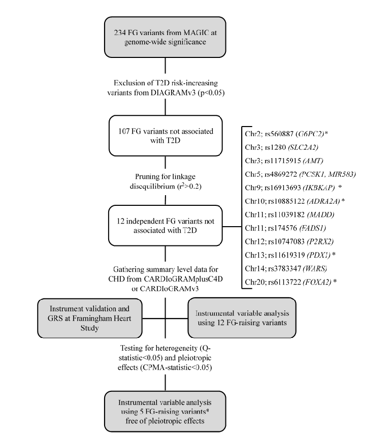 Our research proposal took advantage of genetic data to gain insights into the complex physiological relationship between blood glucose and the risk of coronary artery disease. We provided evidence that increased glucose is a causal factor leading to increased risk of cardiovascular disease, and that this increased risk is independent from the risk conferred by other processes that are also present in the context of diabetes. These findings support the notion that close monitoring of glycemia, especially among individuals at increased genetic risk, might be a beneficial intervention to reduce cardiovascular events.