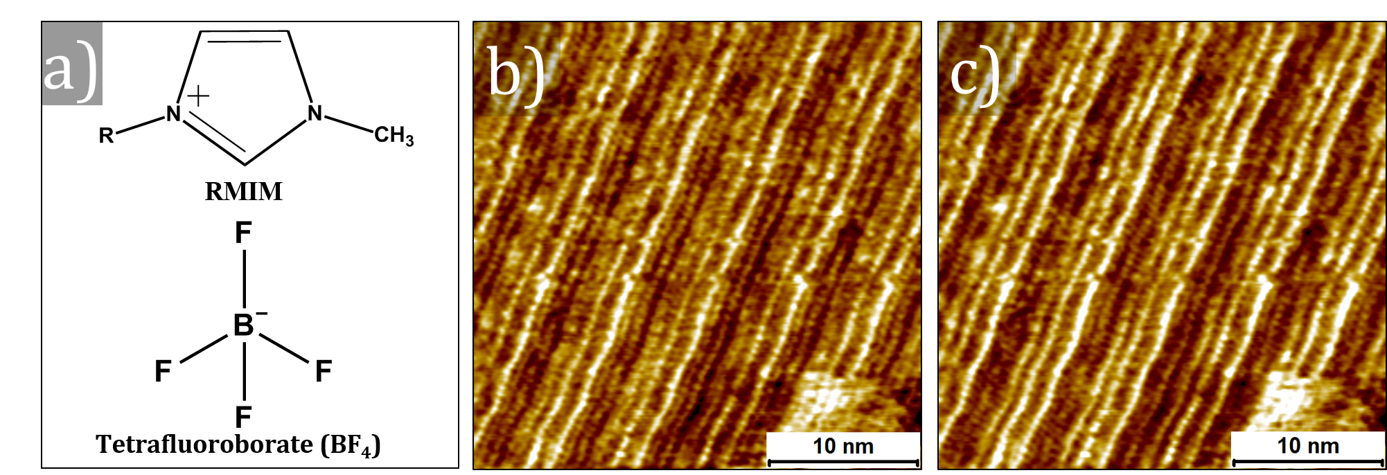 The principal objective of the research is to find out the detailed structure of ionic liquid (IL) thin films in contact with graphene and graphite using scanning probe microscopy. This research employs state of the art microscopy to unravel the interfacial structure of a series of ILs in order to understand the changes in the adsorbed ion layers as a function of change in the constituent ions. The fundamental information obtained from the microscopy measurements is employed to assess the influence of the interfacial structure of the ILs on graphene electronic structure by using Raman spectroscopy.
