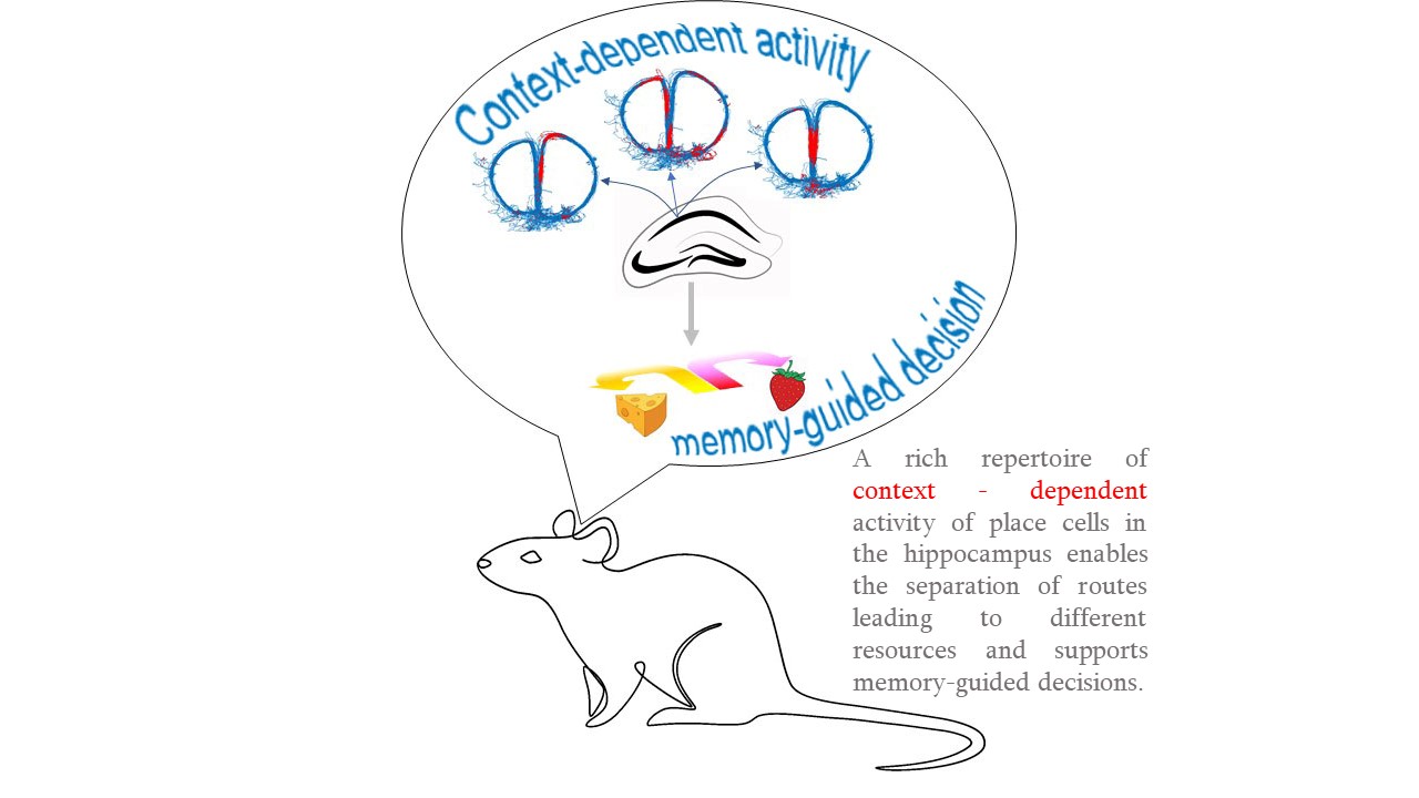 Additionally, we have found an unexpectedly rich diversity of context-dependent activity coding trajectory the animal followed in different trials. Based on our findings, we expect to enrich our understanding of the components the hippocampal representation of the environment is composed of.