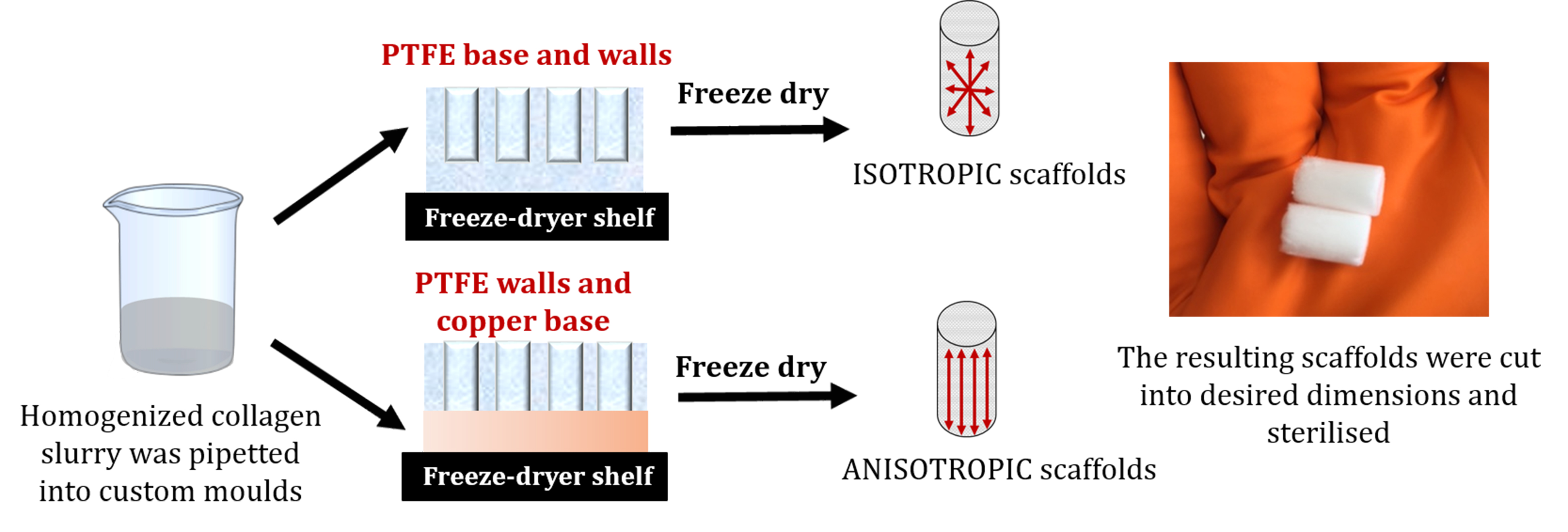 1. I have produced scaffolds with two types of pore orientations: isotropic and anisotropic.