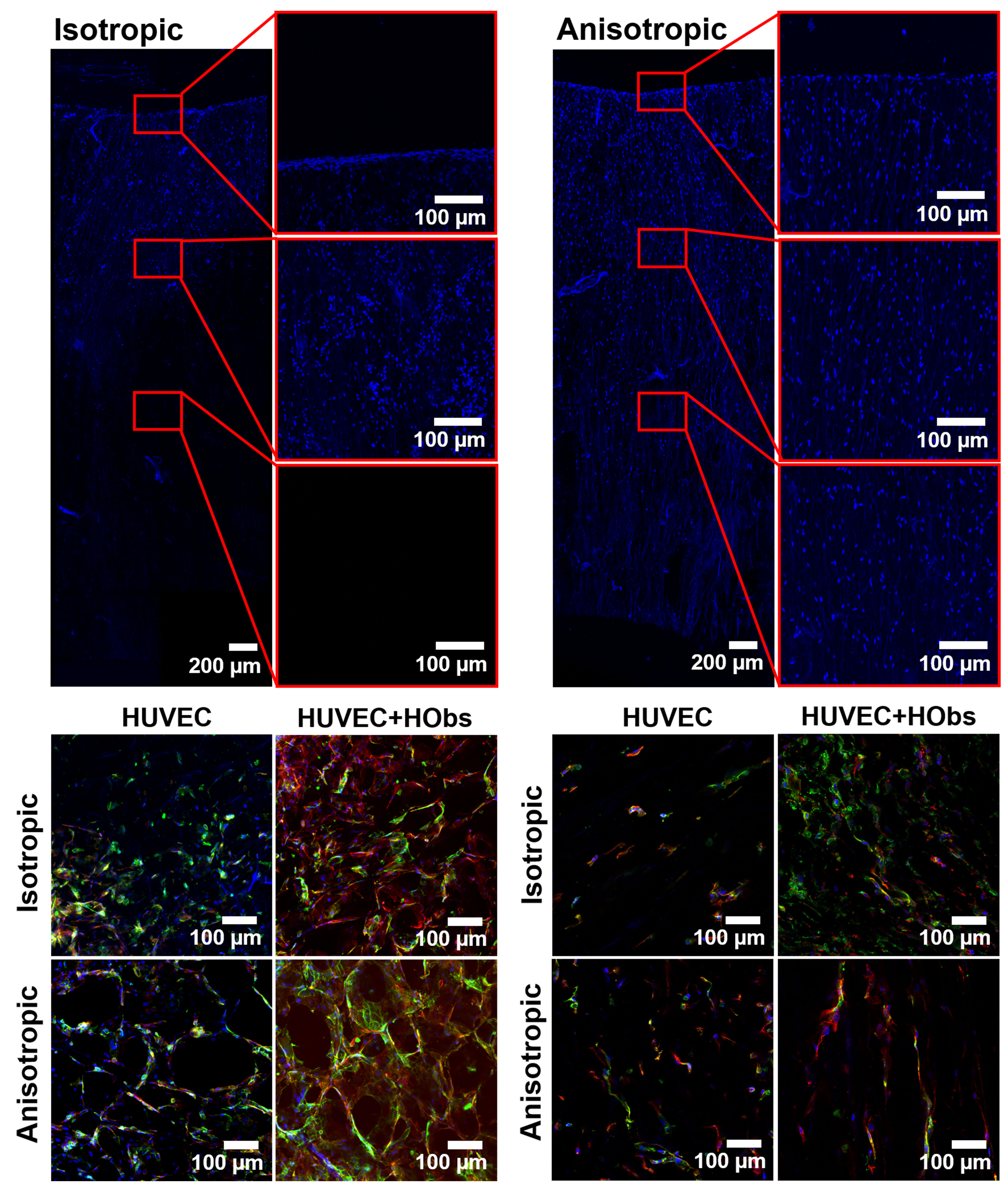 • The migration and distribution of human umbilical cord endothelial cells (HUVECs) within the scaffolds.