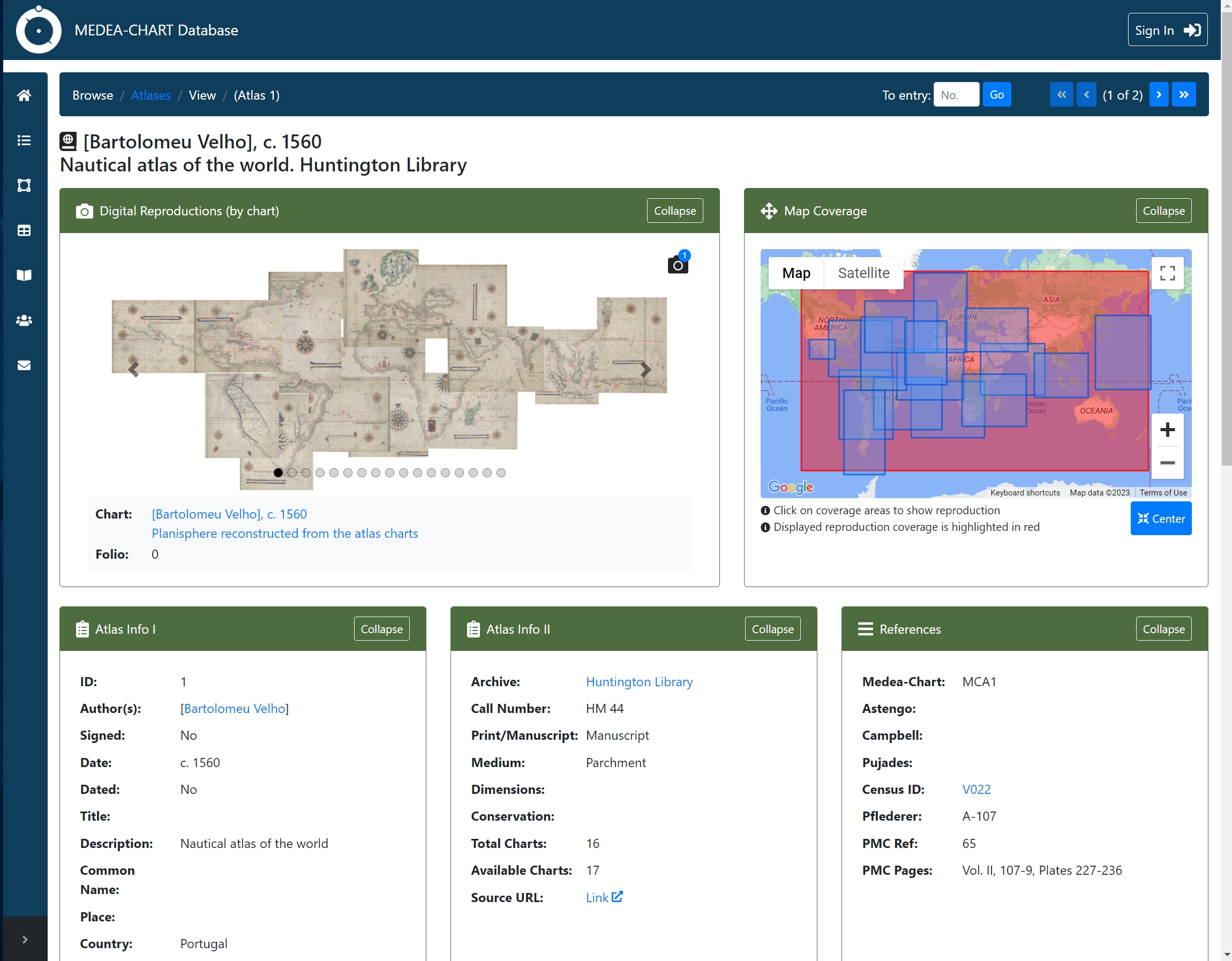 An online information system (the Medea-Chart database) which was conceived, designed, and populated by the Medea-Chart team, with images and information of more than 6000 nautical charts and 600 atlases, is now fully operational and available worldwide to researchers and general public: https://medea.fc.ul.pt/main(opens in new window). The associated code was developed by our computer science expert, Ricardo Vaz.