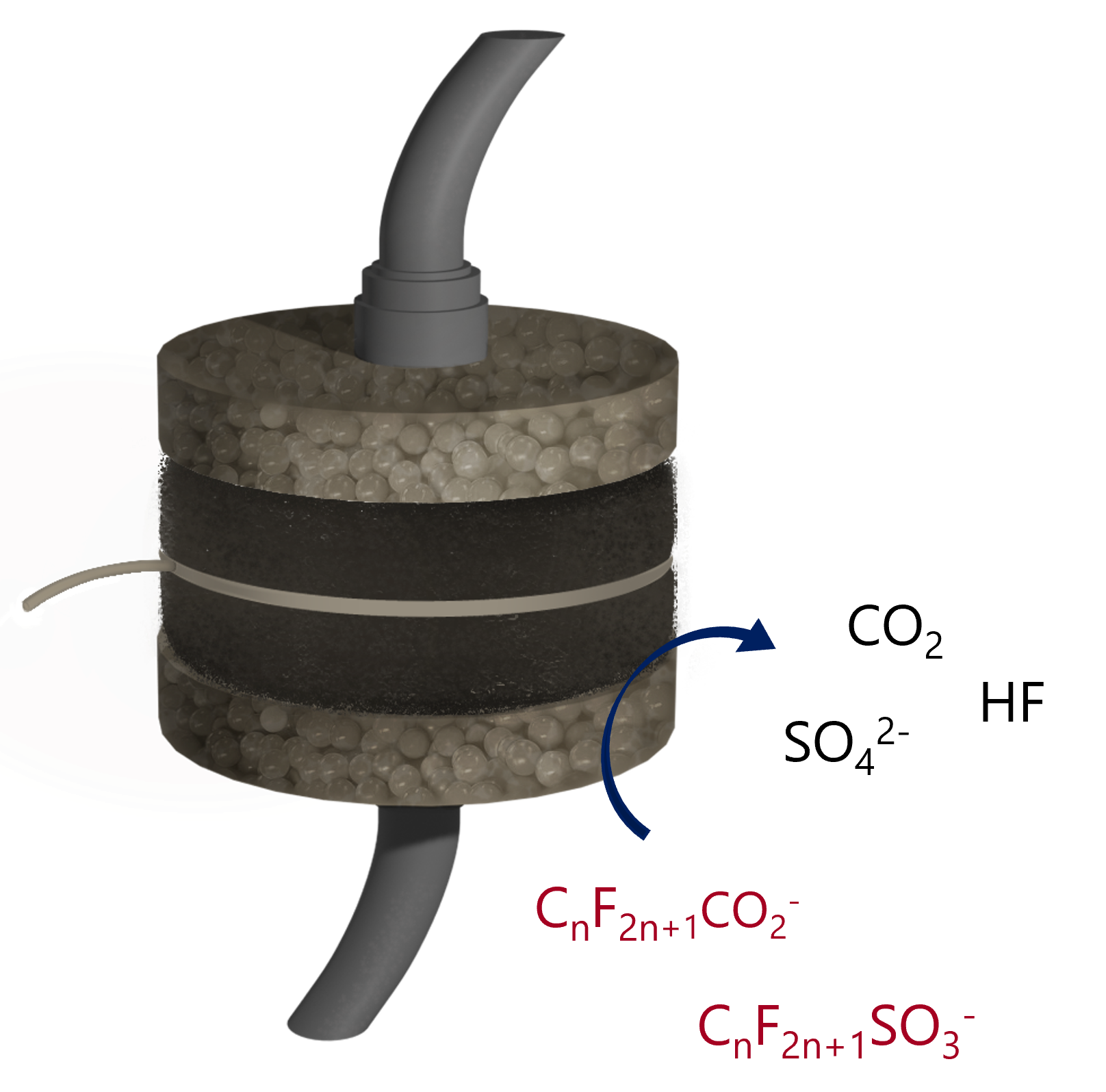 ELECTRON4WATER project developed a new electrode material, graphene sponge electrode, produced using a low-cost, bottom-up synthesis method with an estimated cost of the synthesis at lab scale being below 50€ per m2 of the material, which is orders of magnitude lower compared to the price of commercial electrode materials (3-6,000€ per m2). The bulk synthesis method developed allows easy functionalization of the graphene-based coating, thus making it possible to tailor the electrode properties and performance. Given its three-dimensionality and porous structure, graphene sponge electrode offers high surface area and can be operated in flow-through mode, thus reducing the mass transfer limitations. The main advantage of the developed material is that it demonstrates electrochemical inertness to chloride, and does not form any chlorine, chlorate, and perchlorate due to chloride oxidation, even at high anodic current densities. This characteristic, coupled with the capacity of graphene sponge anode to effectively oxidize and degrade even the most persistent contaminants such as PFAS, represents a major breakthrough in electrochemical water treatment, and is a step towards practical applications of electrochemical systems in water and wastewater treatment. The invention enables electrochemical treatment of even brackish, highly polluted wastewater (e.g. reverse osmosis brines, landfill leachate), often rich in PFAS and other contaminants, but without compromising the process performance due to the formation of toxic and persistent byproducts. The synthesis and application of graphene sponge electrodes for water treatment has been patented and is the focus of an ERC Proof of Concept Grant GRAPHEC.