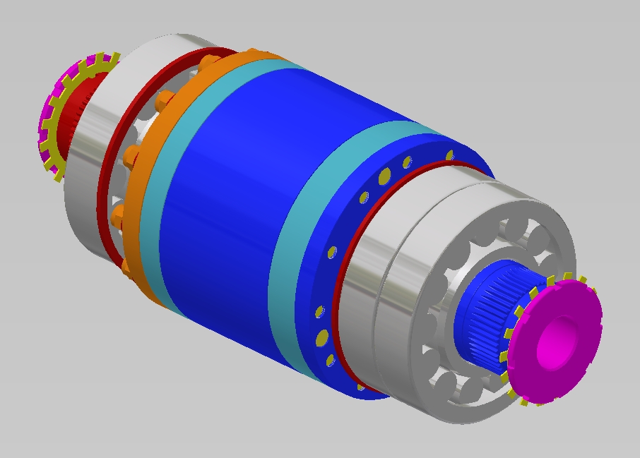 VZLU is developing interconnection of the lateral rotor gearboxes via vertical transmission shafting, supported on two or three auxiliary bearing housings, in order to lock the two gearboxes together. The transmission shafting is connected to the lateral gearboxes by means of bevel gearings. Between flanges of the transmission shafting is inserted special hydraulic torque loader which make it possible to impose static or variable torque on gearboxes during operation/rotation according to a test program. The imposed torque is proportional to the pressure of the feed-in oil supplied to the device via quill shaft. Due to the back-to-back or face-to-face architecture, the required power input covers just losses in the gears and transmission shafting. The research work and analyses during the first project period showed greater complexity of the planned testing device than was originally planned.