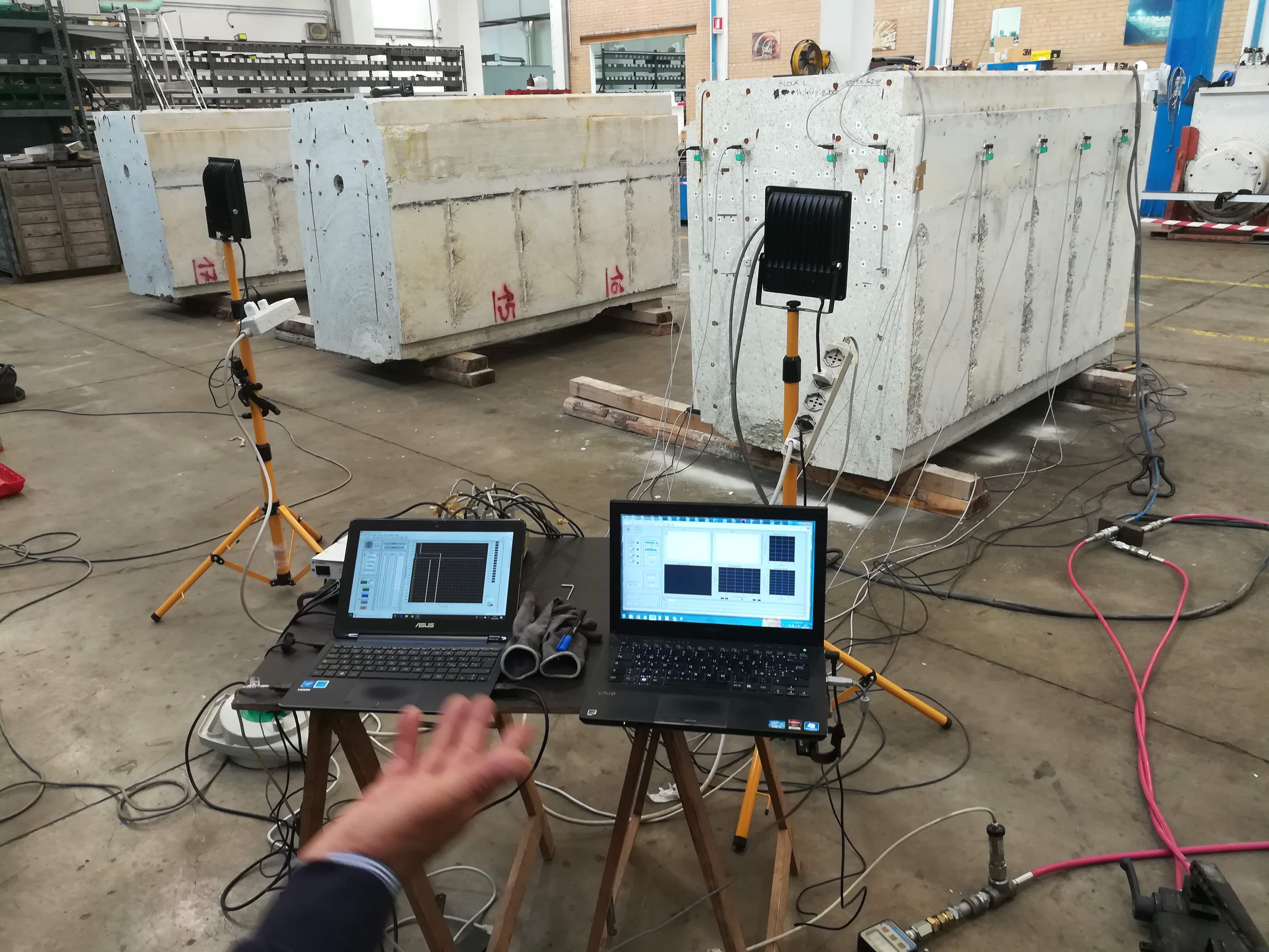 The WP4 dealt with the trial tests, conducted in the SOILMEC test area in Cesena, Italy. We used the 20m deep, 3mx1.5 m rectangular shaft which SOILMEC uses to test their equipment. A Method Statement was prepared to describe the means and methods to carry out the tests. Six sets of 20 m long pre-cast concrete beams (split into two 10m long elements) have been prepared in three different shapes to prove the ability of the trimmer to cut planar (as for linear wall alignments), slanted (as in circular shafts), and irregular concrete bulges surfaces. The test started at the end of 02/2019 and was completed during 03/2019. However, only three sets have been tested, as the results were deemed completely satisfactory. In 04/2019 (see WP6) the results of the tests were presented at the BAUMA, a specialized international fair in Munich, where we presented the system to a large specialized audience, offering the opportunity to run a second test in front of potential customers. The equipment remained at disposal of the potential test until the end of the 6th period (08/2019).