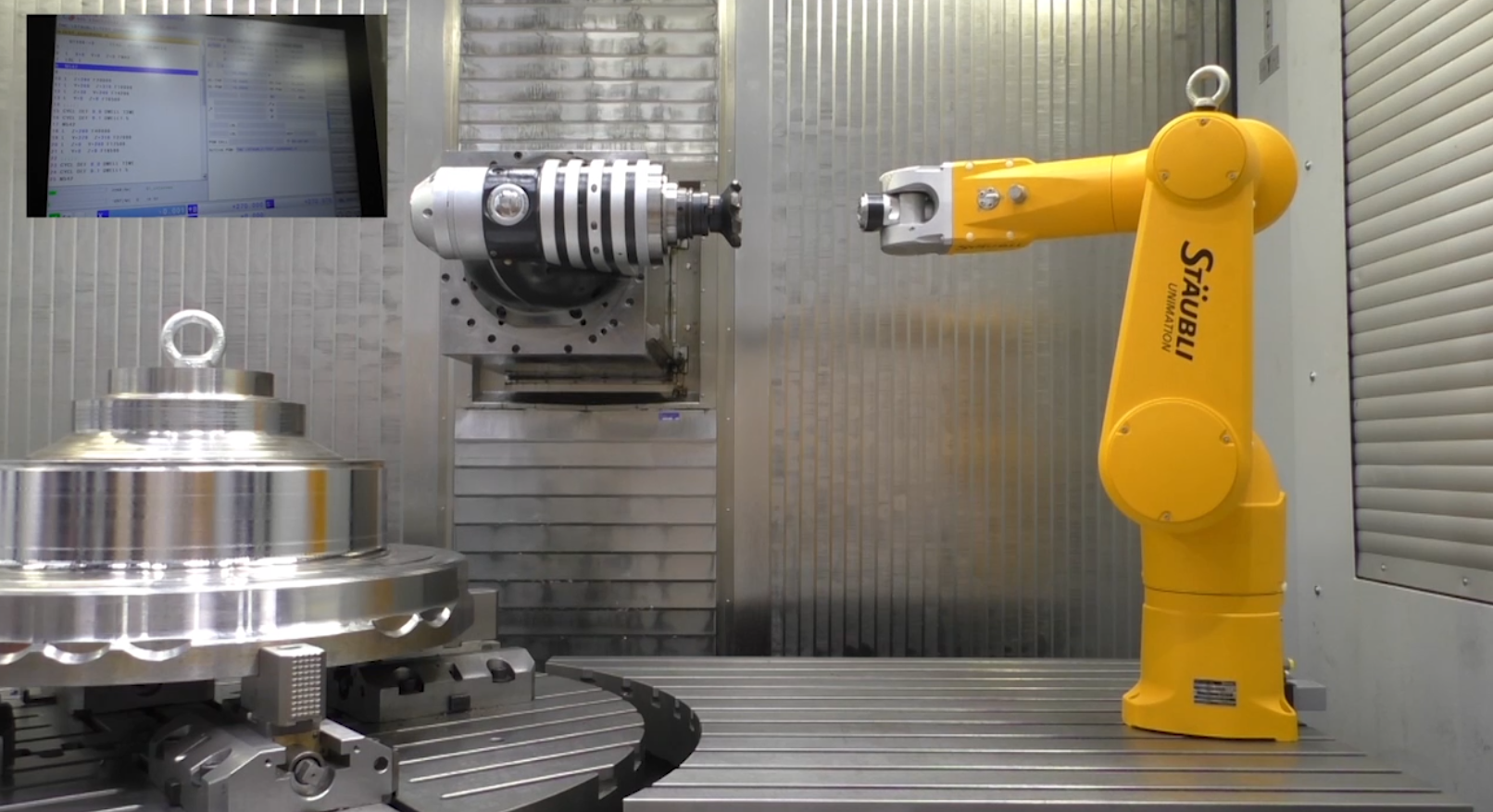 A multi-camera vision-based safety system detects humans in the working area of the robot, and re-plans the robot's trajectory to avoid collision. A communication architecture between machine tools and robots allows them to collaborate sharing a common working area, even though they're programmed as independent systems.