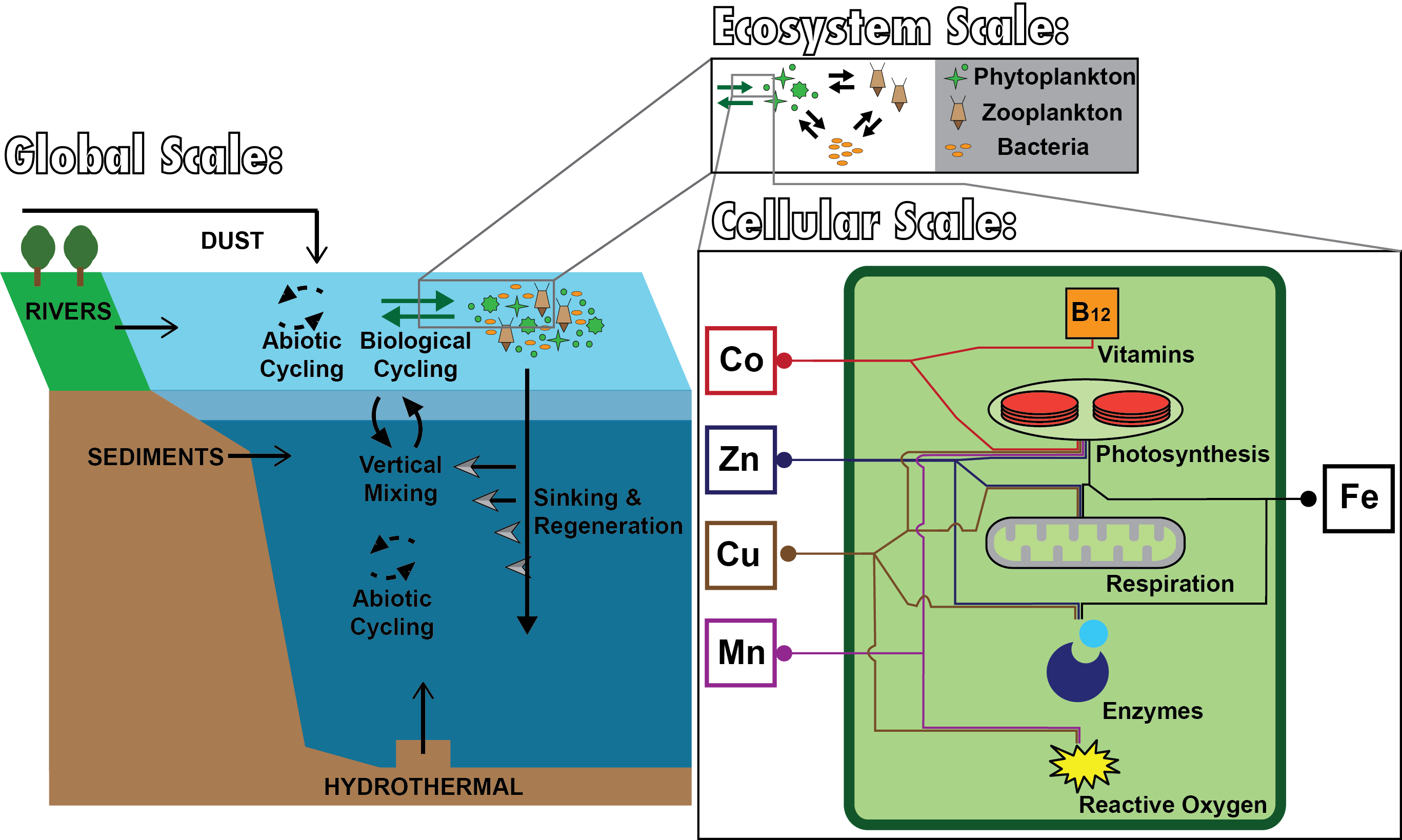 Our current conceptual model behind our understanding of the impact of environmental variability on phytoplankton growth is very simple and ignores the role of multiple micronutrient resources in shaping spatio-temporal variability. This ERC project will respond to these gaps in two main ways: firstly, by developing representations of multiple micronutrient resources in global ocean biogeochemical models to understand the drivers of their variability and secondly, to assess and constrain how resource variability affects microbial activity in the context of a changing climate.