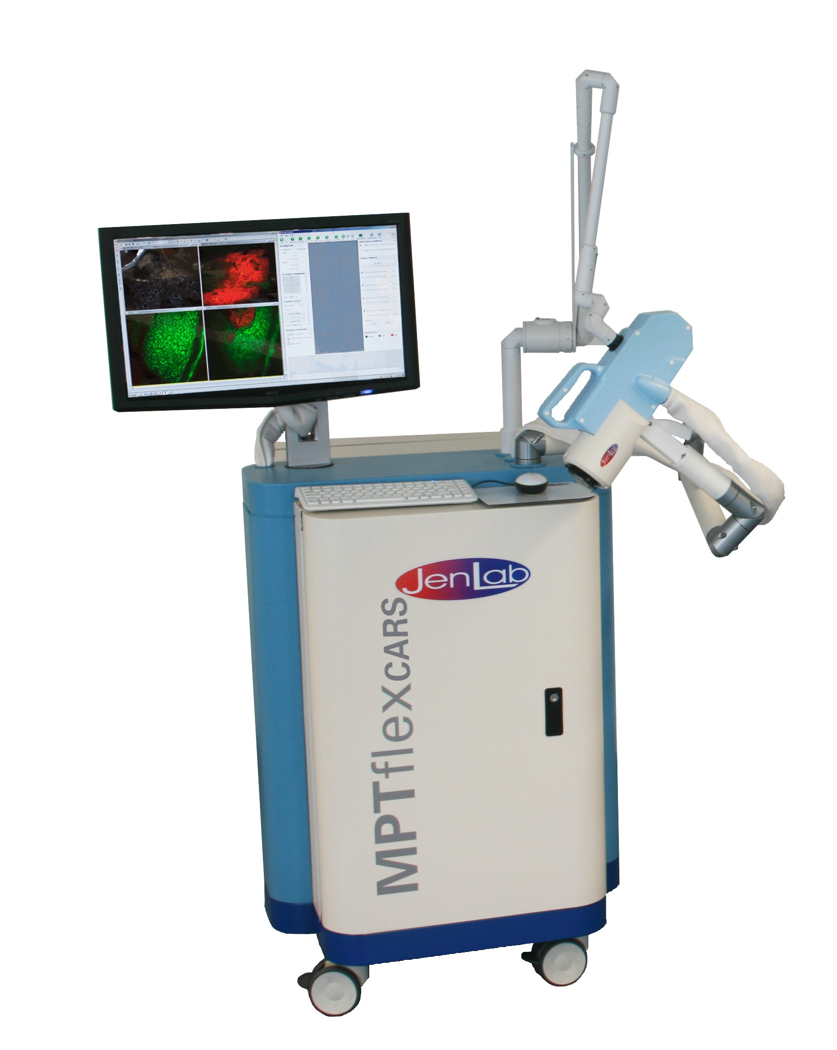 JenLab, a high-tech company with university background based in Berlin (Germany), has therefore developed an innovative novel diagnostic medical device based on femtosecond laser radiation for immediate, non-invasive early diagnosis of skin cancer avoiding the many thousands of tissue biopsies and for detecting corneal diseases within seconds and without any labelling. By exciting molecules in cells inside the tissue with near-infrared radiation and measuring the resulting fluorescence and Raman signals, JenLab’s multiphoton tomograph MPTflex-CARS is able to depict the morphology of an intra-tissue cell on a subcellular submicron level and provides even information on metabolic processes. By a special optomechanical adaption, JenLab’s solution is even applicable to ophthalmology for imaging of human cornea. The MPTflex tomographs provide label-free optical biopsies and are able to recognize cell damages already before they become visible giving dermatologists and ophthalmologist a tremendous temporal head start in fighting against diseases. In a first pilot study a sensitivity and a specificity of 95% and 97%, respectively, were obtained for multiphoton tomography of patients with malignant melanoma. Additionally, JenLab’s prototype (TRL 7) can be applied for both effectively preparing surgeries and transplantations and for postoperative evaluation and companionship of therapies.
