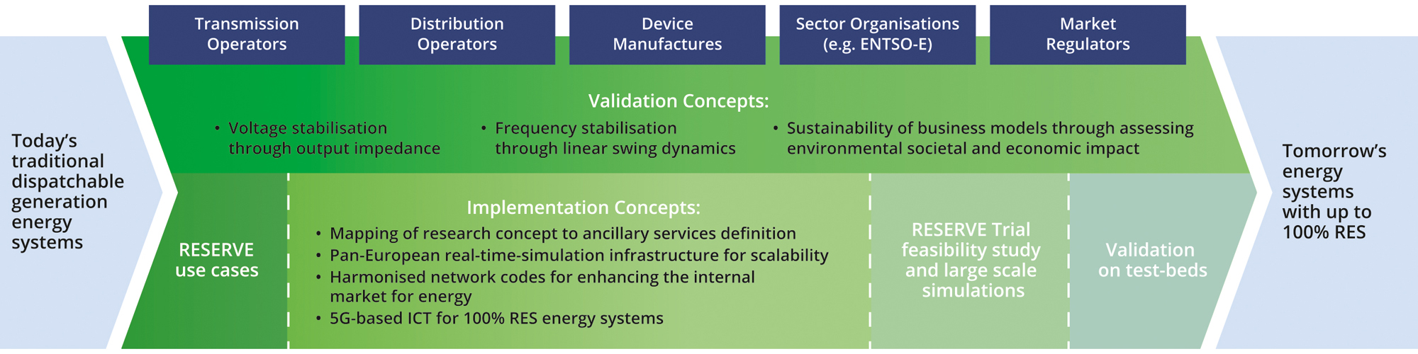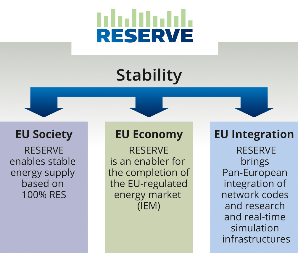 The RESERVE project enables up to 100% penetration of renewables by having developed innovative approaches to system level automation based on innovative ancillary service provision with a close to market level of maturity, supported with validation of the concepts and policies using a pan-European real time simulation Infrastructure, and the anchoring of the approach with the main sector actors in Europe and beyond.