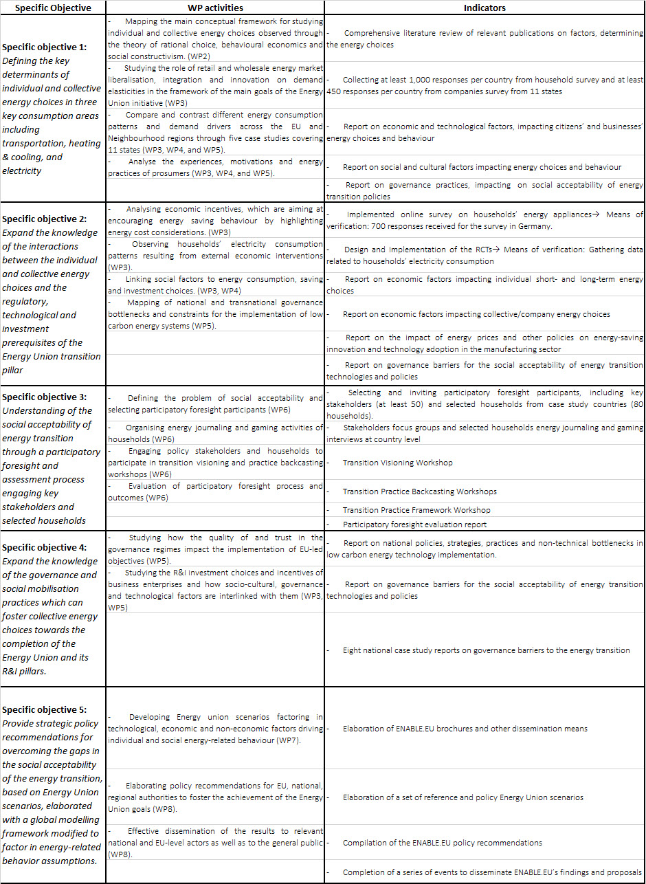 The final aim of this project was to contribute to more enlightened, research-based policy decisions, to ease the finding of the right incentives for the reaching of the twin goals of successful implementation of the Energy Union and Europe’s transition towards a decarbonised energy system of the future. To reach this final aim, ENABLE.EU will seek to provide an excellent understanding of the social and economic drivers of individual and collective energy choices with a focus on understanding changes in energy choice patterns.