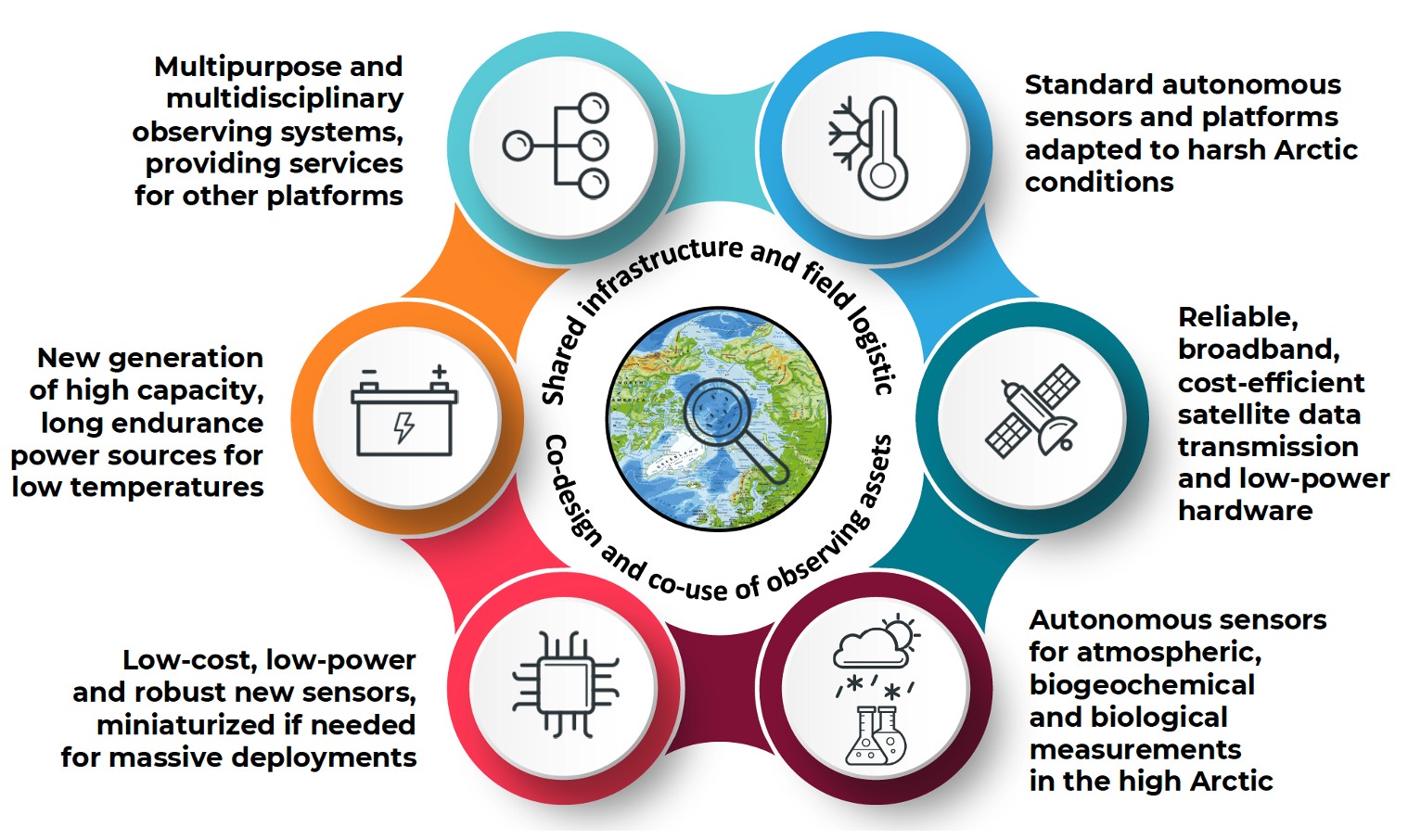 INTAROS has supported development and testing of innovative and robust technologies that can operate year-round in Arctic conditions. One important goal was to fill gaps in existing observing systems e.g. ocean acidification, biogeochemical parameters, snow-water equivalents, snow albedo, and microplastic. Selected multi disciplinary observing systems in key regions of the Arctic have been extended and improved by new sensors and technologies e.g. mooring systems and terrestrial stations.