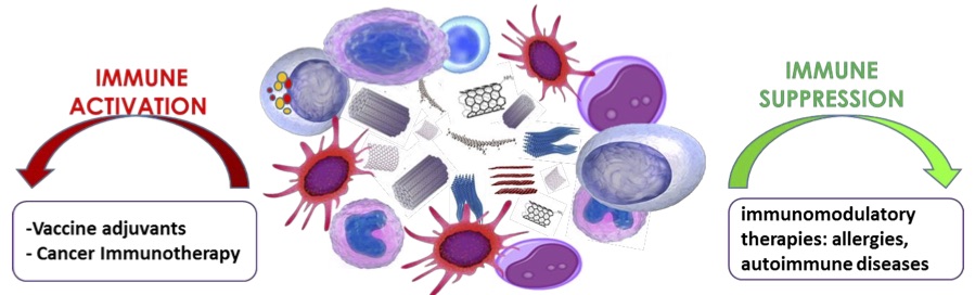 Long-term nanomedical goal: The functional pipeline will be used for the accurate immune mapping of graphene oxide, aminated graphene, exfoliated graphene, graphene nanoribbons, functionalized carbon nanotubes and carbon nanotube fibers. The accurate immuno-characterization of the tested materials on the basis of intrinsic physical-chemical features and immunological properties will open breakthrough perspectives for the development of new therapeutic approaches applying nanomaterials as immunomodulators, immunotherapetutic agents, molecular vectors and scaffolds for tissue regeneration/engineering.