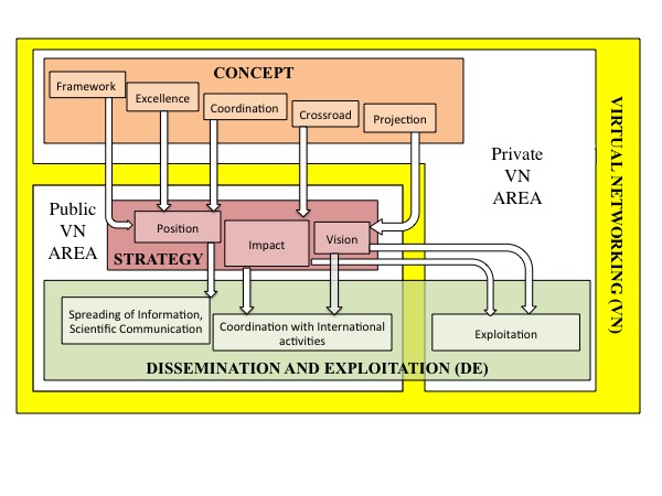 To achieve these objectives, Nanoarchitectronics is structured in four main activities. The “Concept” activity is devoted to establish and define the concepts of Nanoarchitectronics and its boundaries with respect to other disciplines and to the activity carried out by other consortia. The “Strategy” activity identifies the policy dialogue and the strategic view of the consortium in terms of position, impact and vision. The “Virtual Networking” serves to internal web communication (private), and for dissemination (public). The “Dissemination and Exploitation” activity, is mainly carried out through PhD short courses and scientific Workshops and special sessions.