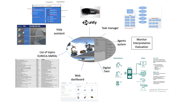 Besides, a Digital Twin demonstrator has been developed to check real processes. This is possible thanks to a robust communications architecture developed between real robots of the process and the virtual ones in the Digital Twin. This demonstrator enables users to see virtually every single robots and parts movements as well as a general Dashboard with process/tasks information. An Augmented Reality Tool has also been integrated to the Digital Twin so that the system can guide workers in human-robot collaborative tasks.