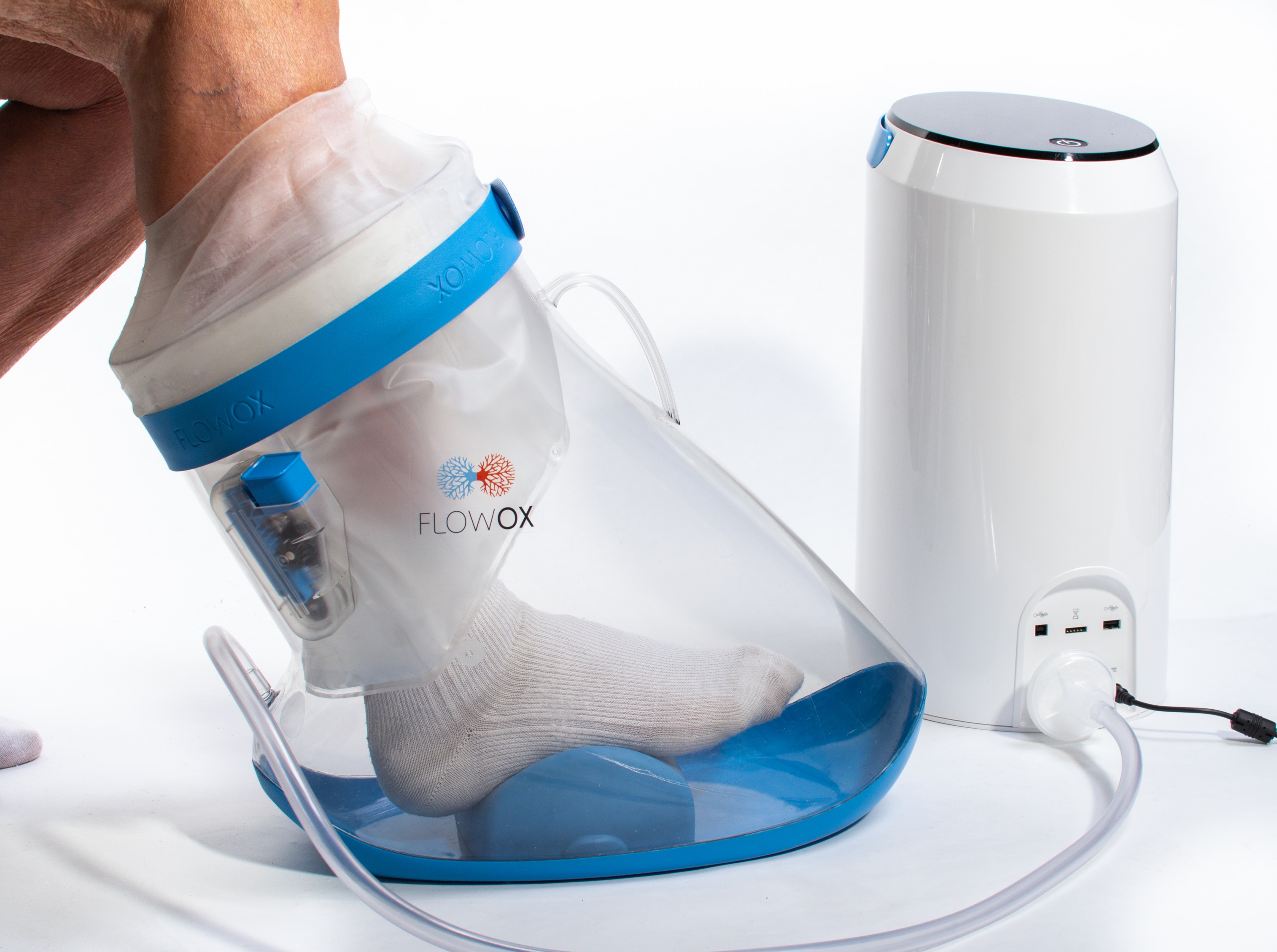 The FlowOx technology targets the underlying cause (reduced blood flow) of these grave symptoms with a cost effective home treatment solution. The system is a Class 2a medical device which applies negative oscillating pressure to the limb. Our goal is to develop, document, manufacture and sell a the system which halts or reverses the progression of PAD to the benefit of patients and health care providers. The results to date show long term improvements in blood flow in the legs, reduced pain and improved rates of wound healing in patients treated with FlowOx. The rapid healing of several chronic leg wounds, has convinced senior clinicians of FlowOx’ efficacy.