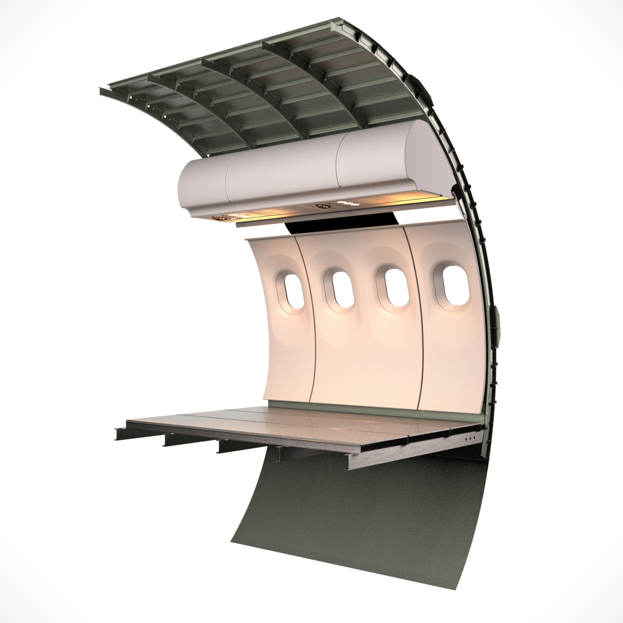 Integrated cargo lining fastening concept: Due to fewer cargo lining requirements, we created a simplified sandwich panel design with a Solvay TegraCore foam core and an integrated smart bracket solution that is optimized for automation.