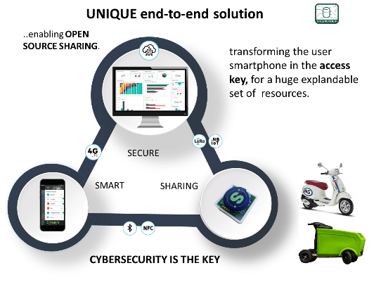 SMASH exchanges authenticated commands a with the user’s smartphone, which becomes the access key for distributed resources, vehicles, charging stations, thus allowing reliable pay-per-use. With a deployment potential of millions of units, SMASH represents a potential revolution in our cities’ mobility.