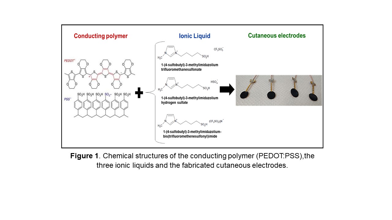 To enhance the electrophysiological recordings, materials that can reduce impedance across the interface between the electrode and the skin have been synthesised : PEDOT:PSS/Ionic Liquid films. PEDOT:PSS/Ionic Liquid films are PEDOT polymers that can retain ionic liquid, combining ionic and electronic conduction to fabricated all-in-one electrodes.