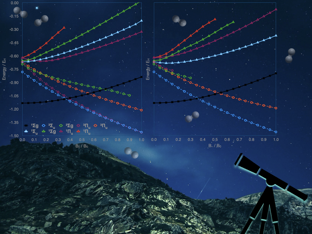 In a separate study, a new ingredient for designing exchange-correlation functionals for use of DFT in magnetic fields was proposed. Instead of kinetic energy density as a scalar, a tensor , Q, was suggested which contains the usual kinetic energy density as its trace and vorticity on the off-diagonals. The natural inclusion of vorticity into the tensor form of the kinetic energy density such that functionals with Q or quantities derived from Q as ingredients would smoothly transition between computations with a field to one without suggests that the minimum level of complexity for functionals that can handle computations in magnetic fields is where the kinetic energy density is considered, ie. the so-called meta-GGA functionals. This finding fits well with our observation that TPSS, a meta-GGA functional, works very well for computing both magnetic properties as well as PES in magnetic fields. Quantities analogous to the electron localisation function (ELF) can also be derived from Q which are necessary to for designing functionals with suitable short and long rage behaviour. This work was published and selected as Editor’s Choice 2018 (72 articles out of all published in 2018), Featured article and also selected for publication as popular science article in SciLight (AIP).