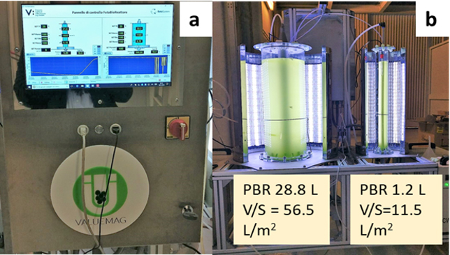 All subparts of the magnetic cone and the cultivation chamber have been studied and developed and the integration of the system and the initial operation have been done. The entire pilot installation has been completed. SOMAC, cultivation chamber, dewatering system, piping network, and electronic/control systems were successfully integrated creating the mPBR. Microalgae cells have been used along with growth media to test and adjust all control and regulation modules. The operation of the plant using magnet cells has been performed proving the proper implementation of the proposed innovative technology. However, the biomass production was lower than the expected. Improvements and recommendations were proposed based on the process simulations and energy/exergy calculations, while the sustainability of the process has been proved by the Life Cycle Assessment (LCA) that was carried out.