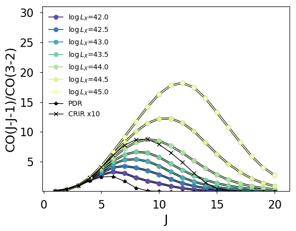 1) Model the chemical, physical, and radiative processes in giant molecular clouds illuminated by both young stars and AGN.