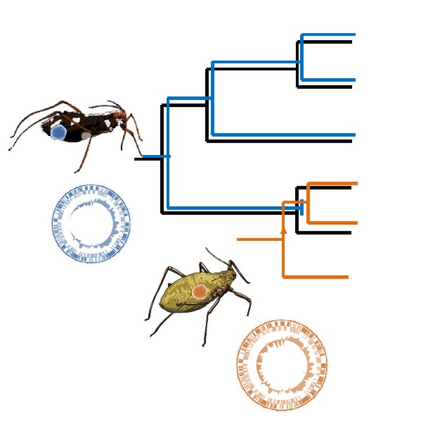 Symbioses with microbial partners have facilitated the diversification of many eukaryotes. Many insect groups have made use of the metabolic capabilities of bacteria to colonize nutrient poor environments that would otherwise be unavailable to them These bacterial symbionts are generally sheltered within insect specialized cells and transmitted from mother to offspring. Hence nutritional obligate endosymbionts can be seen as “key adaptations’ which acquisitions have spurred the diversification of insects. Nutritional endosymbioses are prominent among sap feeders (e.g. aphids, cicadas, whiteflies…) and blood feeders (e.g. lice, bedbugs..). However these obligate mutualisms have their downsides. The maternal transfer of endosymbionts causes severe bottlenecks in bacterial populations, propelling the endosymbiont genome into a process of erosion. This can reduce the metabolic capability of bacteria, ultimately increasing their insect host extinction risks. One possible outcome of this situation is the acquisition of a new symbiont . An increasing body of evidence shows that, in many insect species, a new bacterial symbiont co-exists with the primary one, taking on a subset of the functions that the eroded symbiont cannot fulfill anymore. One particularity of these bacterial partnerships is that they are extremely dynamic: the newly arrived symbiont is often replaced during the diversification of the insect hosts. This project attempts to understand the dynamic of these endosymbiotic systems. Why are these new symbiont repeatedly replaced ? Do shifts in symbiotic associations lead to ecological shifts in the insect hosts? What are the potentially negative ramifications of obligate, heritable symbioses ? Can they overcome the initial benefits of the associations?