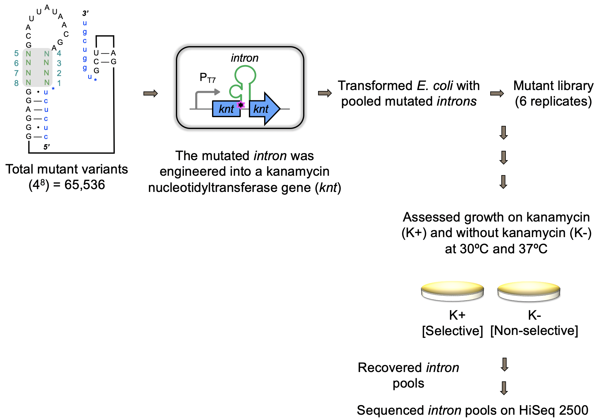Due to their intrinsic thermodynamic properties, RNA can misfold easily in cells. One way to mitigate RNA misfolding is through the actions of RNA chaperones, which bind and unwind structured RNA molecules and thereby offer opportunities for these misfolded species to refold properly. Such rescue activity has implications for the fitness effects of individual mutations - at least mutations that compromise RNA folding or structure might be buffered by RNA chaperones. However, little is known about the rules governing such mutation buffering. Here, we describe how a model RNA chaperone, the DEAD-box RNA helicase CYT-19, affects the fitness effects of mutations in a model structured RNA, the Tetrahymena group I intron, whose self-splicing activity is dependent on its structure. The goal was to comprehensively catalogue mutational effects on this self-splicing intron in the absence and presence of CYT-19. Conclusions: To date, this work has yielded considerable information about the mutational effects on the Tetrahymena group I intron. My results highlighted the overall complexities in delineating such mutational effects on a model RNA. More importantly, understanding the in vivo mutational effects on a model RNA will have considerable implications for understanding the robustness in RNA folding. Through this project, two-way transfer of knowledge and skills has been achieved.