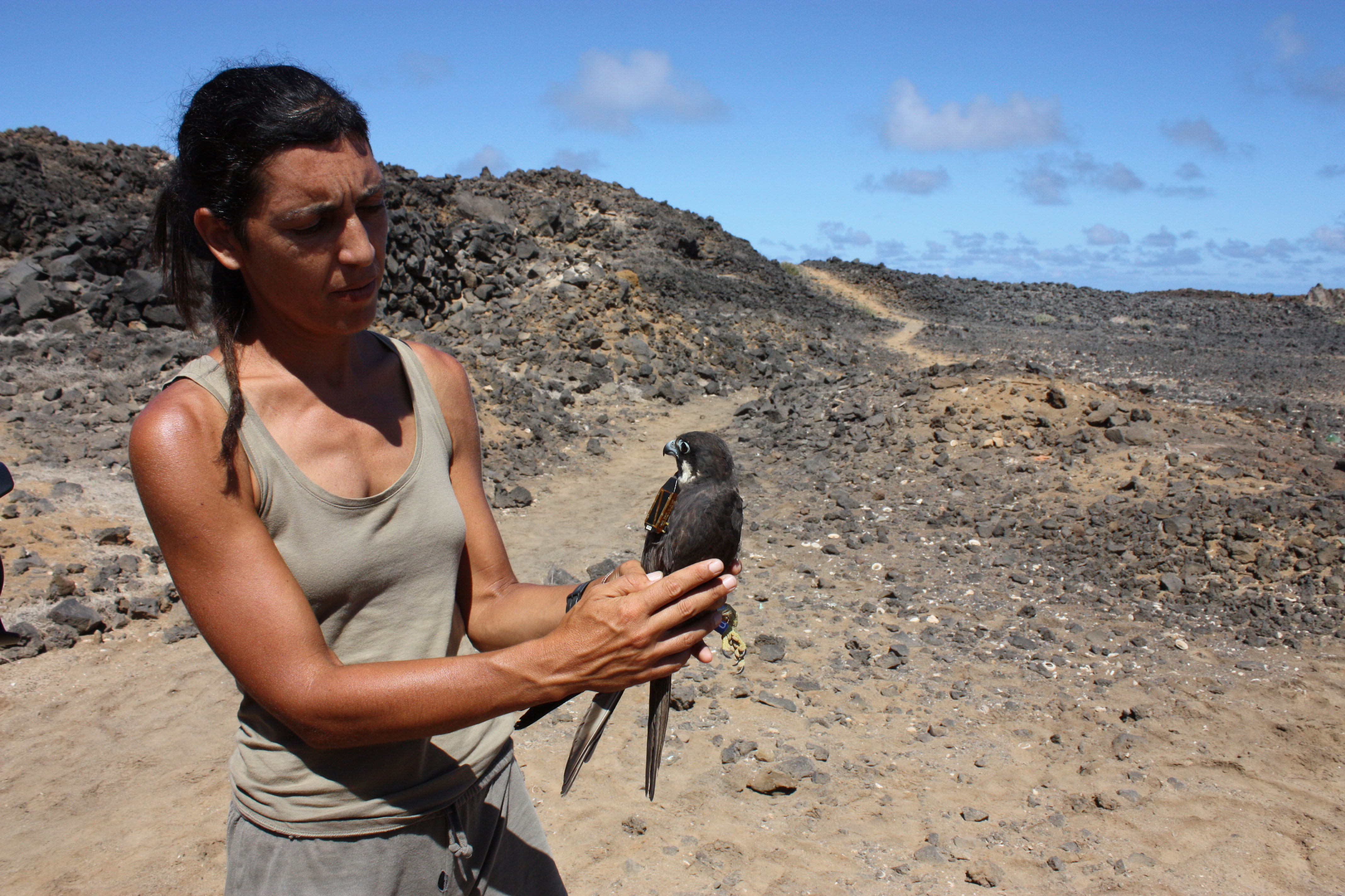I will use the Eleonora’s falcon (Falco eleonorae) colonies in the Canary Islands (Spain) as a model system. This is a long-distance migrant that breeds throughout the whole Mediterranean Basin and winters in Madagascar. It occurs in two distinct melanin-based colour morphs independent of age and sex caused by variation in the Mc1r gene. Predicting whether dark or pale morphs will be more affected by environmental change will depend on the adaptive function of colour polymorphism and how it covaries with behaviour and physiology. During the breeding season, the Eleonora's falcon specializes in hunting migratory birds that it captures over the ocean as they head to Africa. Consequently, its breeding season is delayed to coincide with the peak in autumn migration, and breeding colonies are located along the main migratory flyways connecting Europe and Africa. Unlike its Mediterranean colonies, the Eleonora's falcon colonies in the Canary Islands lie away from major migratory flyways and so migratory birds only reach the Canary archipelago accidentally when blown off-course by trade winds. Currently, rising temperatures and oscillations in pressure systems (e.g. the North Atlantic Oscillation, NAO) are influencing large-scale wind patterns. Furthermore, autumn migration in birds breeding in Europe and wintering south of the Sahara has advanced in recent years, while that of migrants wintering north of the Sahara has been delayed.