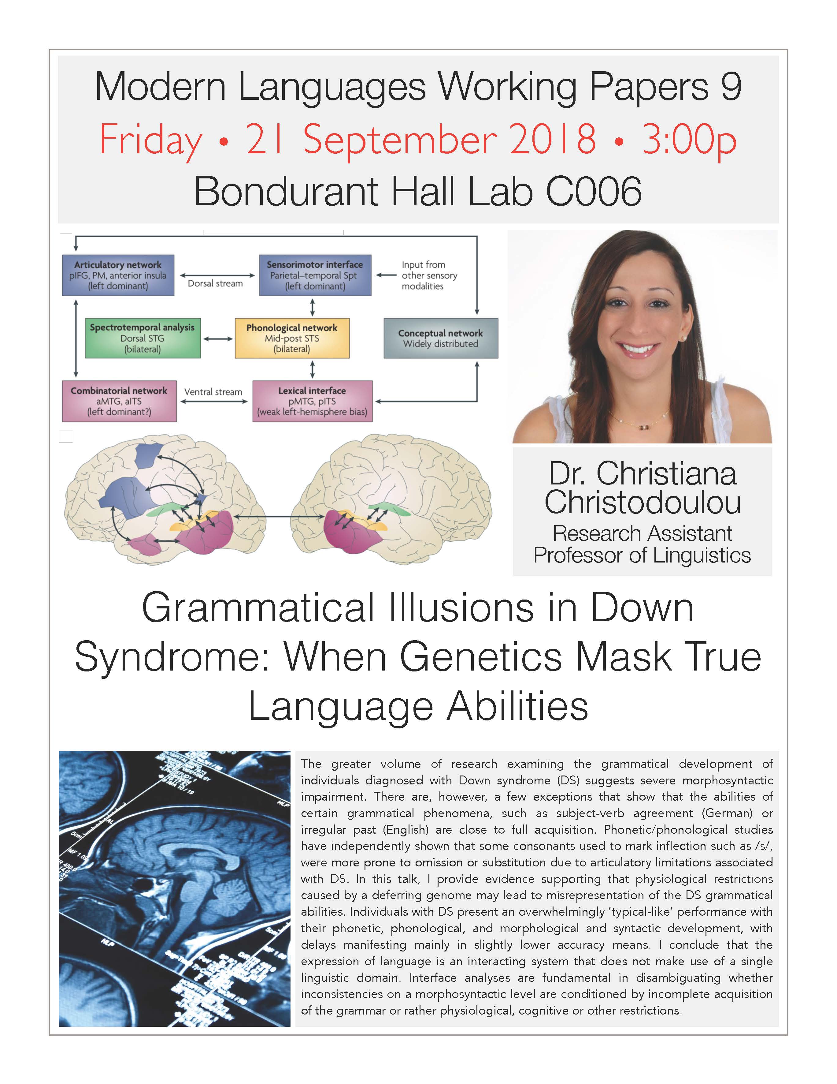 This project makes numerous contributions on a linguistic, methodological, clinical, and social-outreach level. For example, it enables us to clarify which seemingly grammatical differences between what is expected and what is actually produced are due to differences in the variation of English our participants are speaking and which are grammatical errors, which, in turn, prevents misdiagnosis and facilitates early diagnosis and intervention. Results from this study can assist with social inclusion of individuals with DS and LDs, as well as AAE-speaking children, given that AAE is a socially stigmatized variety. Our numerous outreach initiatives with public events, media coverage, and educational workshops for the public, conference presentations, and journal publications also help improve the public’s opinion on individuals with DS, LDs as well as the grammatical standing of dialects. The number of participants, populations, age range, grammatical phenomena, and the number of tasks administered are all innovative additions to the limited information available on these variations of American English.