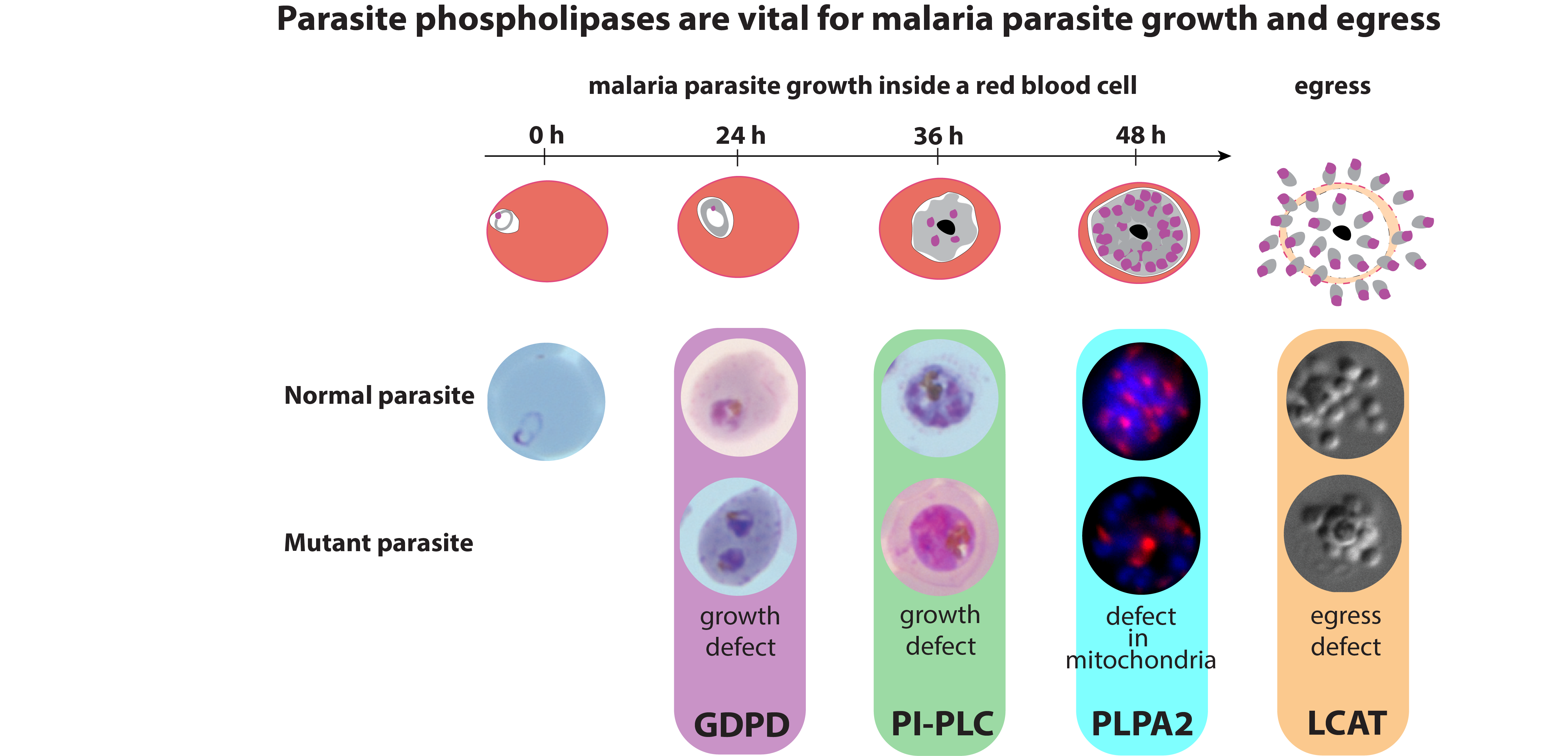 1) A Plasmodial phospholipase- lecithin: cholesterol acyltransferase (PfLCAT) is required for efficient blood-stage egress in the parasite but not essential for parasite survival.