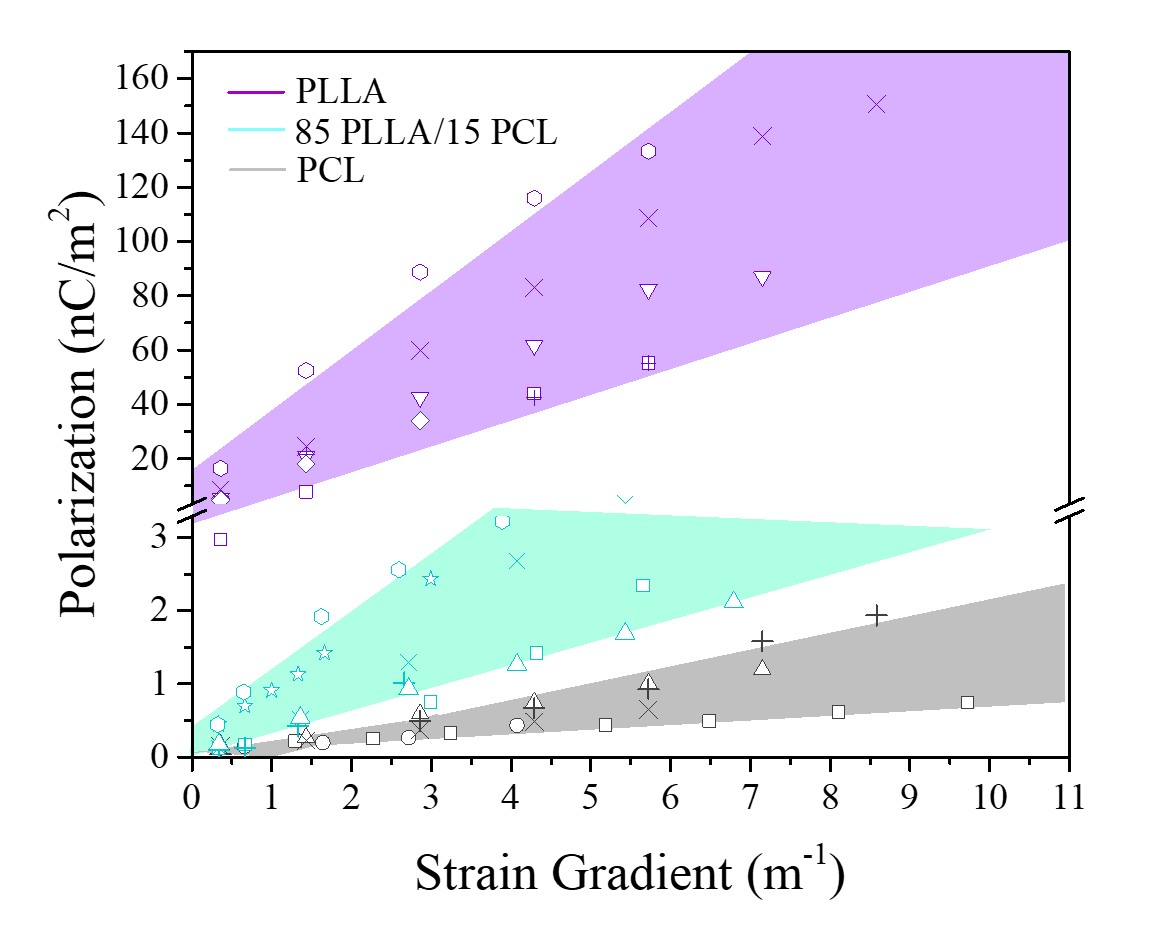 Second, we have measured the flexoelectricity of biodegradable and/or biocompatible polymers and bioglass materials that have proven efficacy in bone repair strategies. The polymers chosen were: