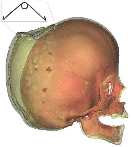 Since 2008, >400 craniosynostosis (Fig. 1) children were treated with stainless steel springs at GOSH. Retrospective data were analysed to create and validate computational models of spring assisted cranioplasty that can be used for surgical planning and to design new devices.